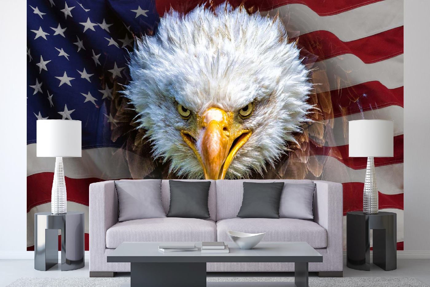 Vlies Fototapete - Amerikanischer Adler auf Flagge 375 x 250 cm