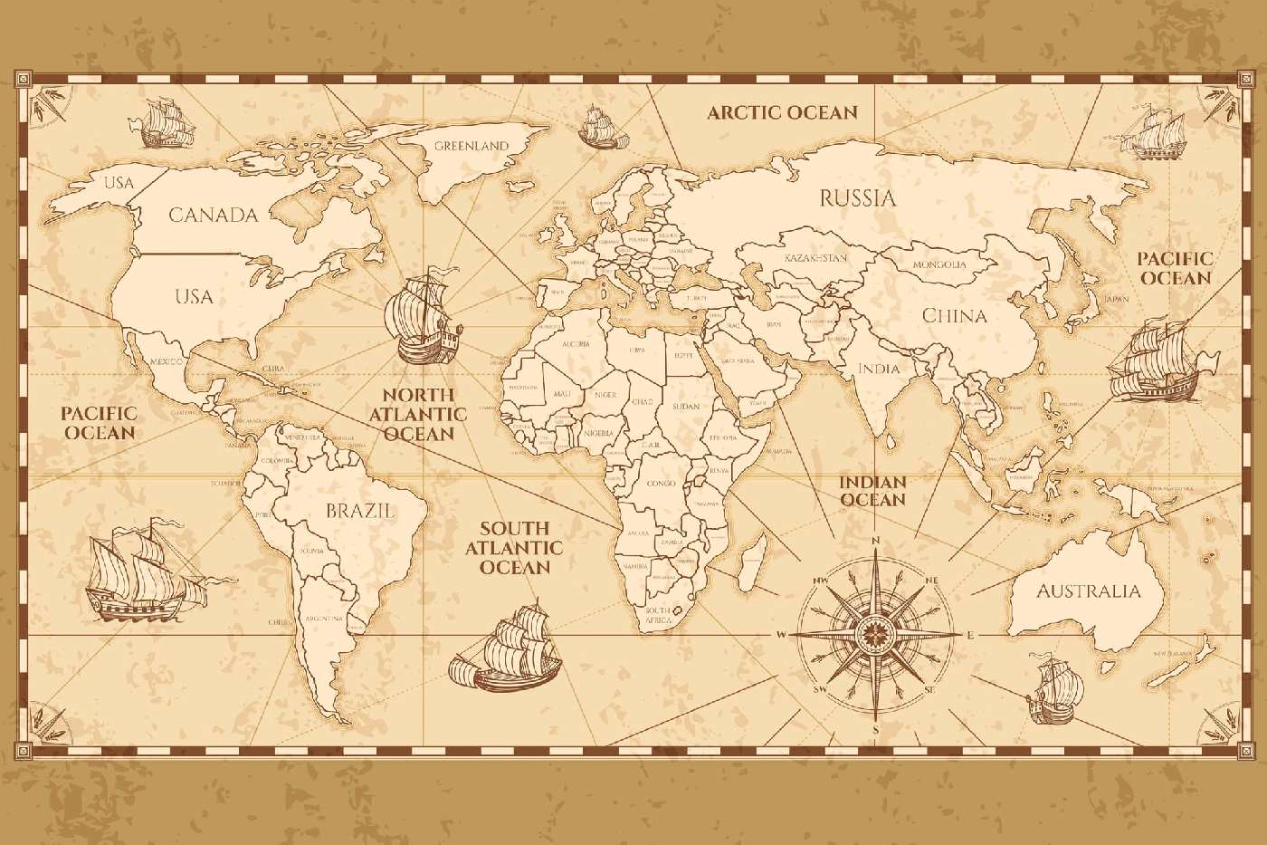 Vlies Fototapete - Antike Weltkarte 375 x 250 cm