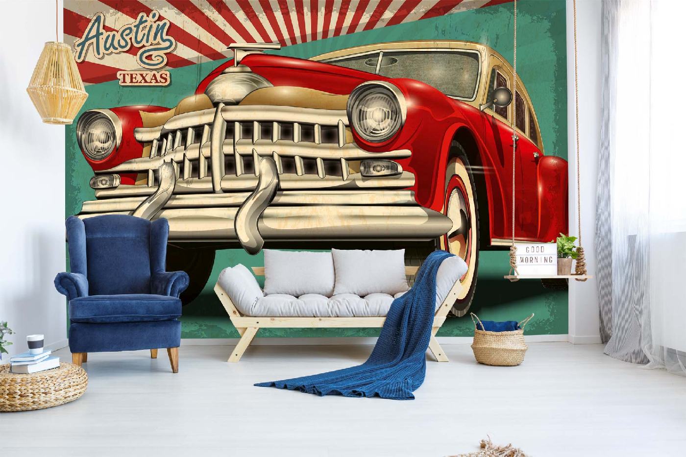 Vlies Fototapete - Austin Retro Plakat 375 x 250 cm