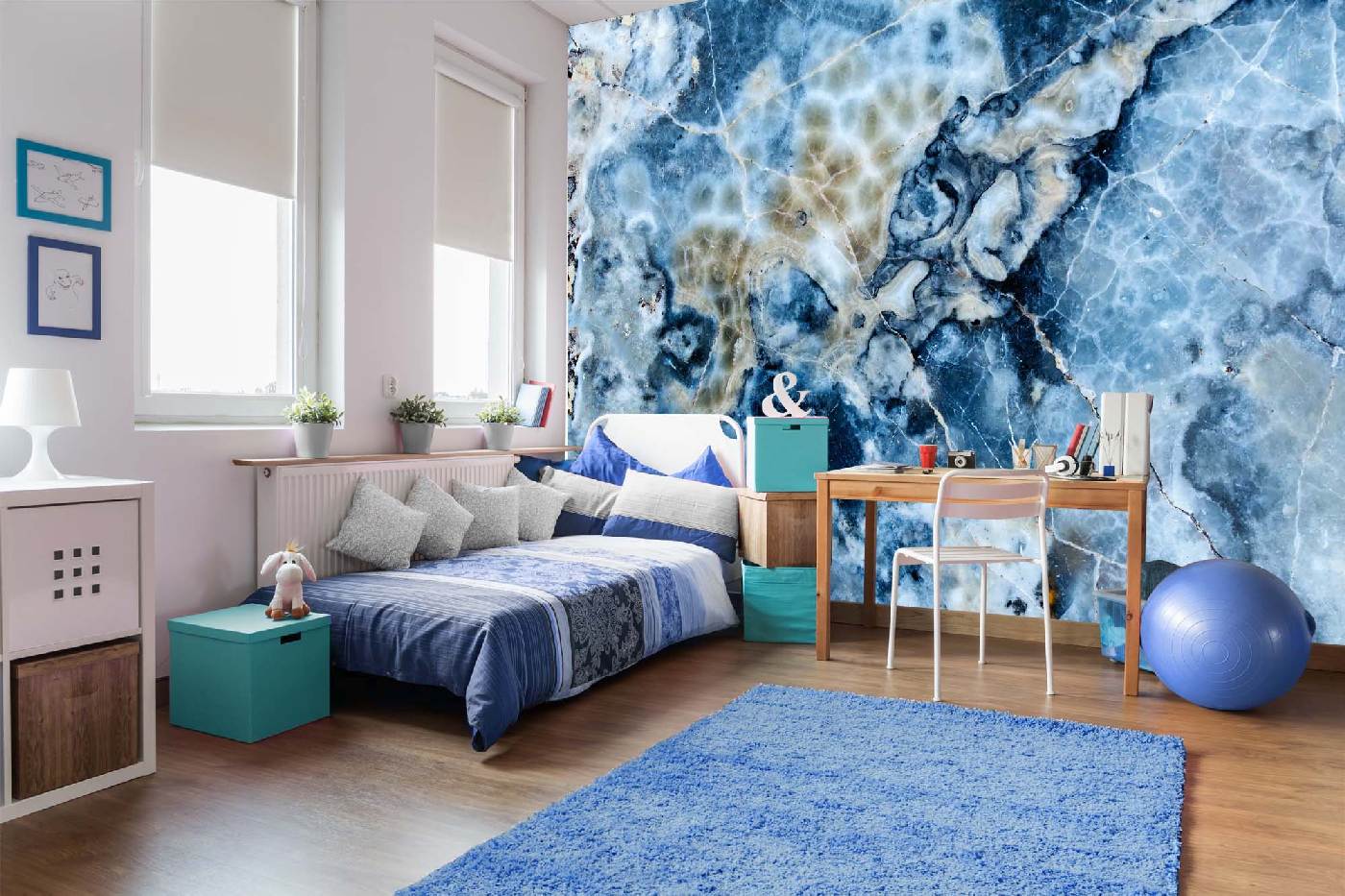 Vlies Fototapete - Blaue Marmorstruktur 375 x 250 cm