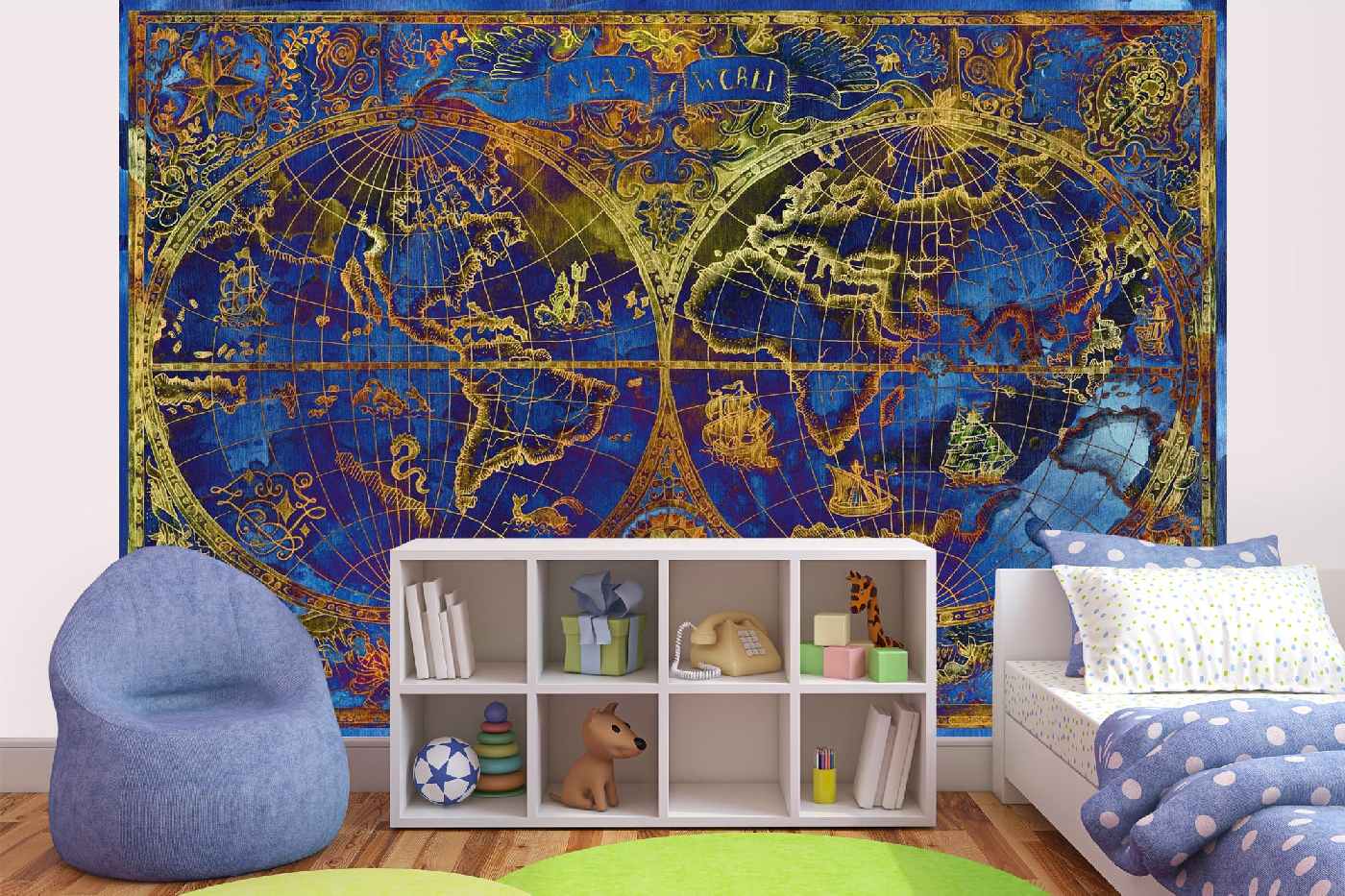 Vlies Fototapete - Blaue Weltkarte 375 x 250 cm