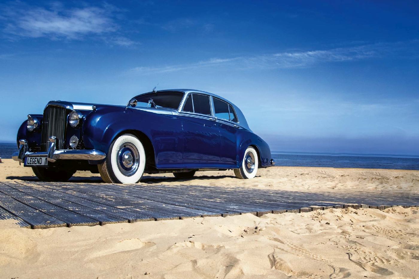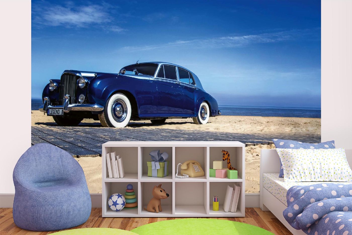 Vlies Fototapete - Blaues Retro Auto 375 x 250 cm