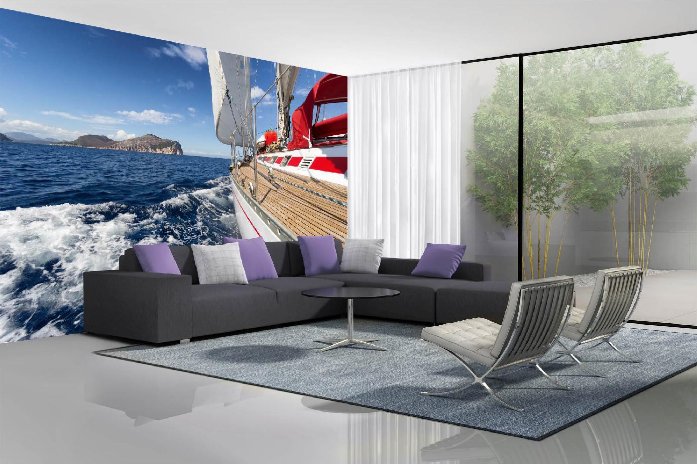 Vlies Fototapete - Boot im Meer 375 x 250 cm