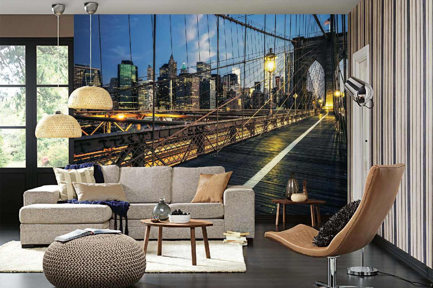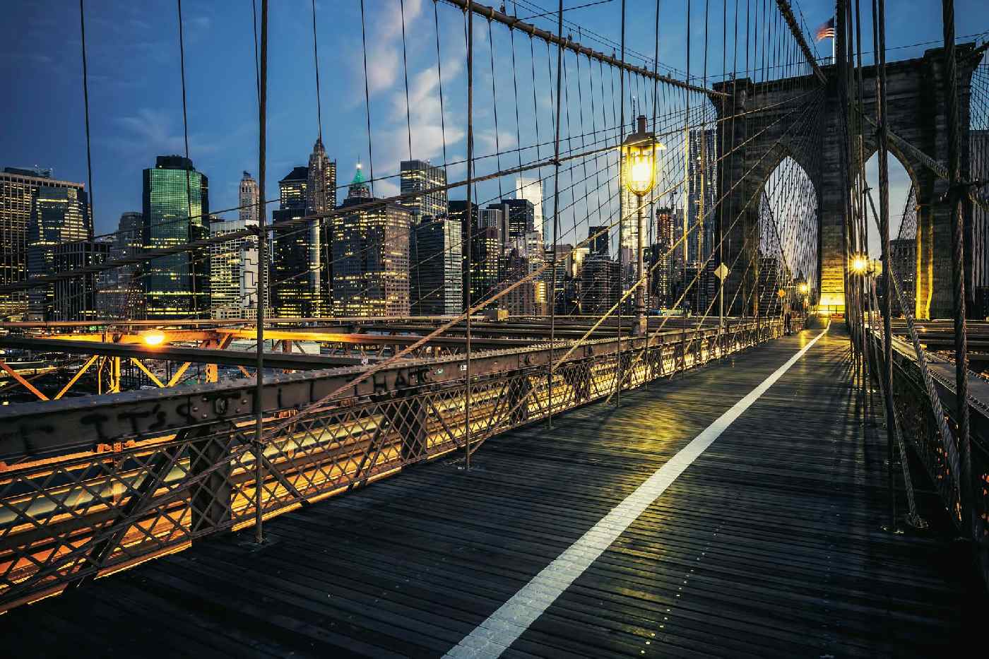 Vlies Fototapete - Brooklyn Bridge bei Nacht 375 x 250 cm