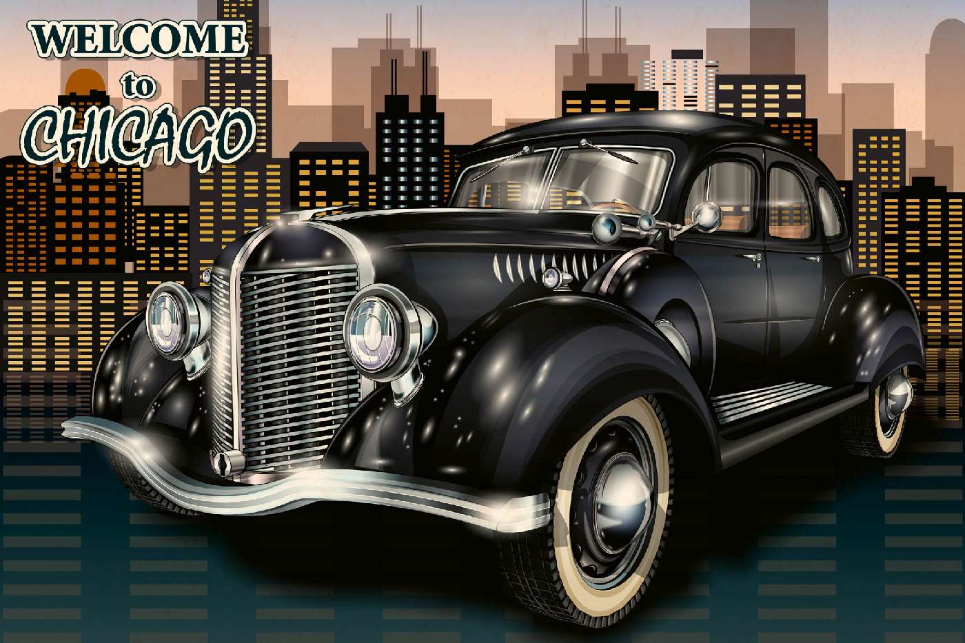 Vlies Fototapete - Chicago Retro Plakat 375 x 250 cm