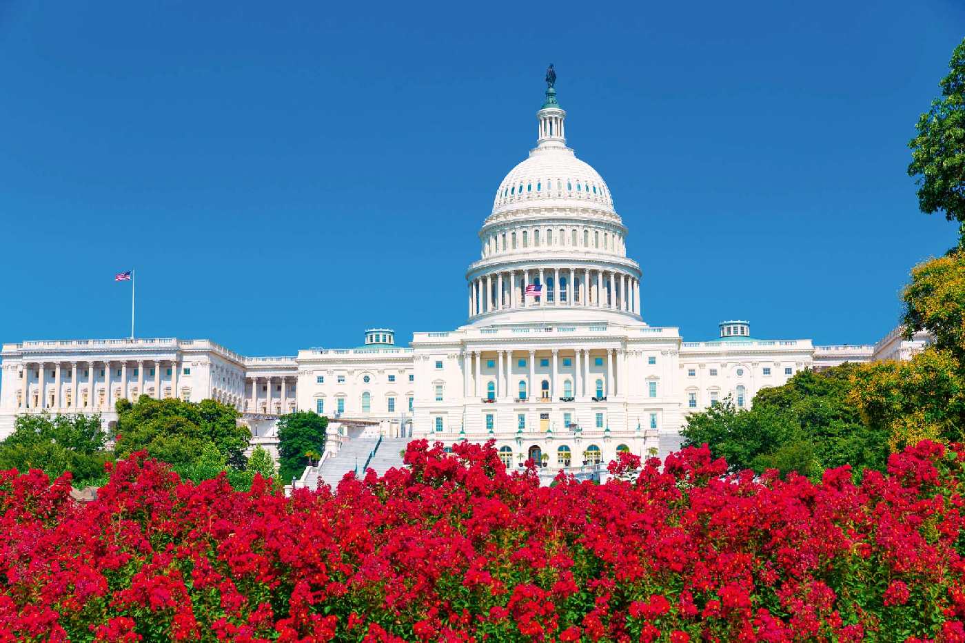 Vlies Fototapete - Das Kapitol mit Blumen 375 x 250 cm
