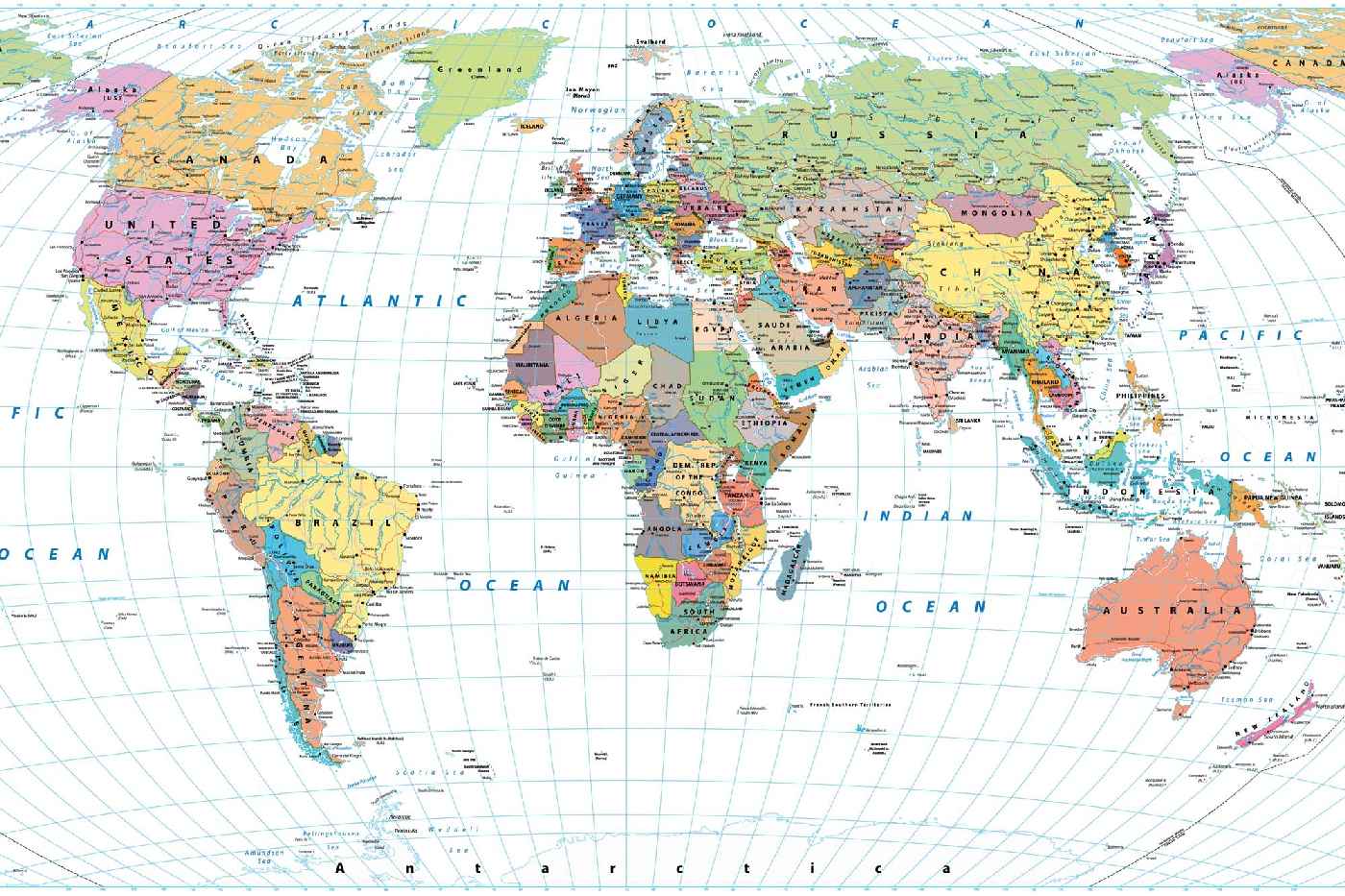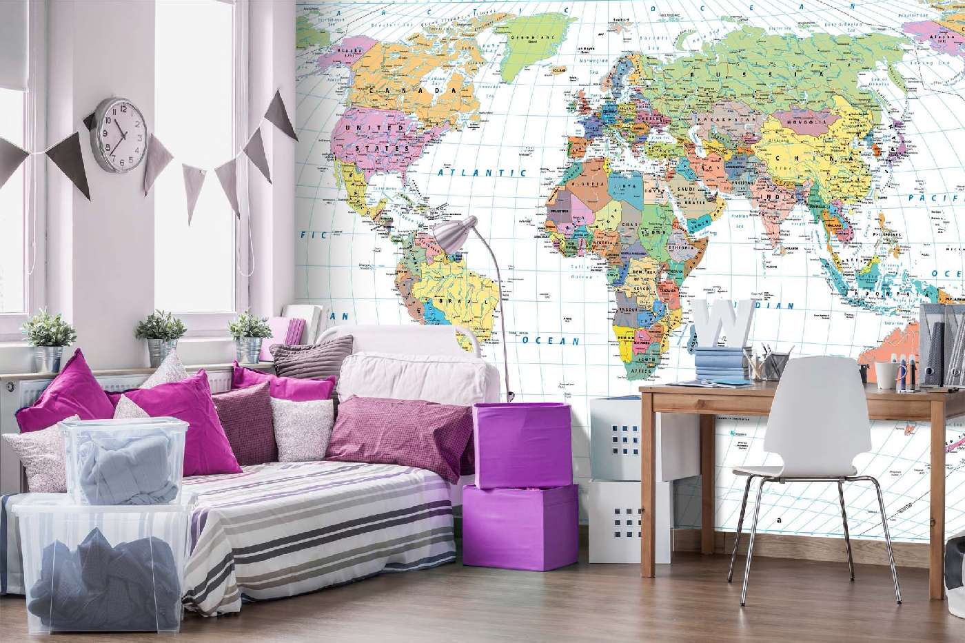 Vlies Fototapete - Detaillierte farbige Weltkarte 375 x 250 cm