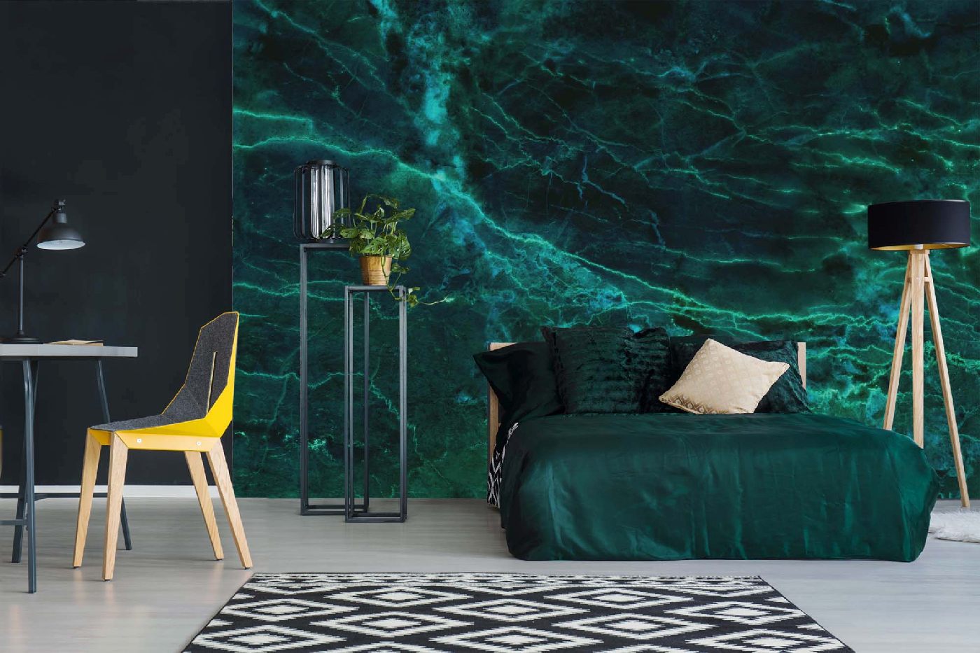 Vlies Fototapete - Dunkelgrüne Marmorstruktur 375 x 250 cm