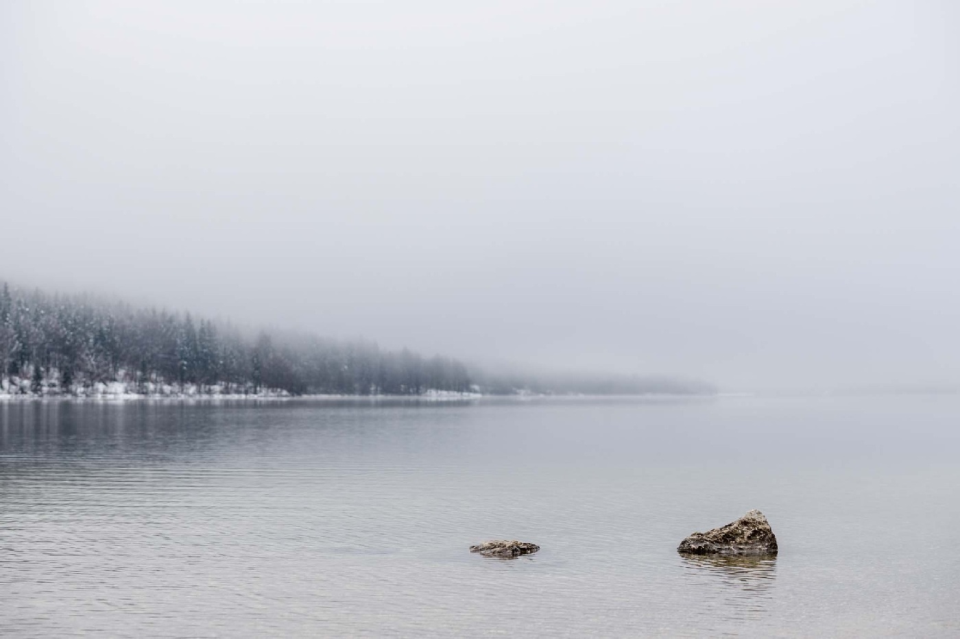 Vlies Fototapete - Felsen und Nebeltag 375 x 250 cm