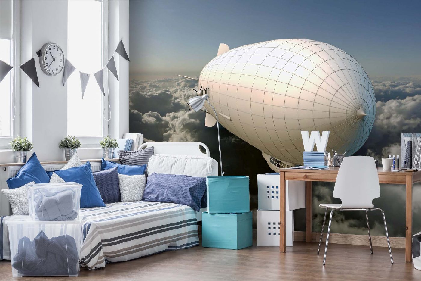 Vlies Fototapete - Fliegendes Luftschiff 375 x 250 cm
