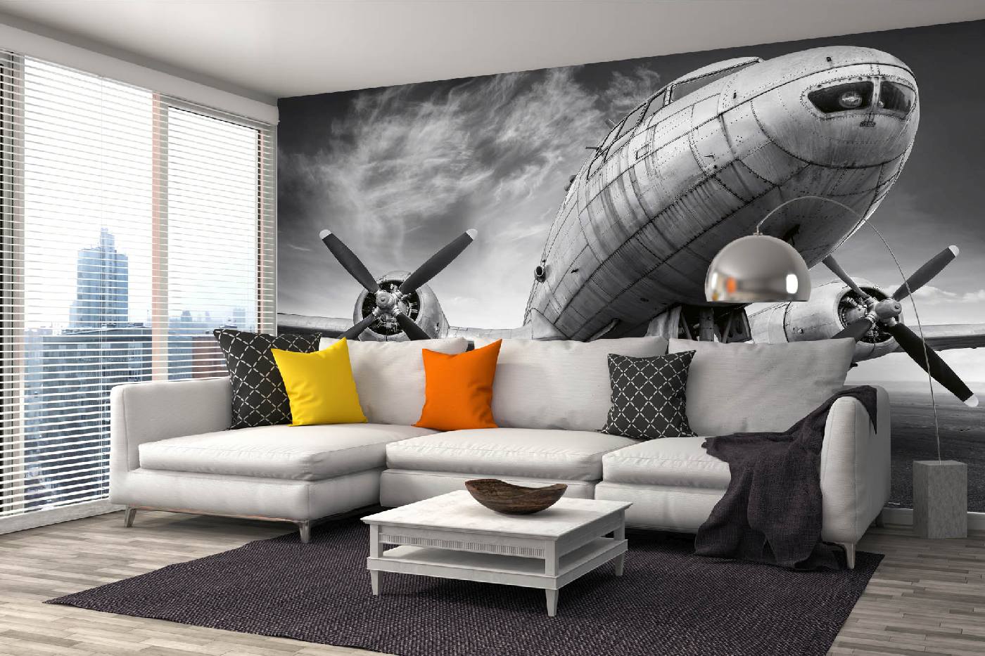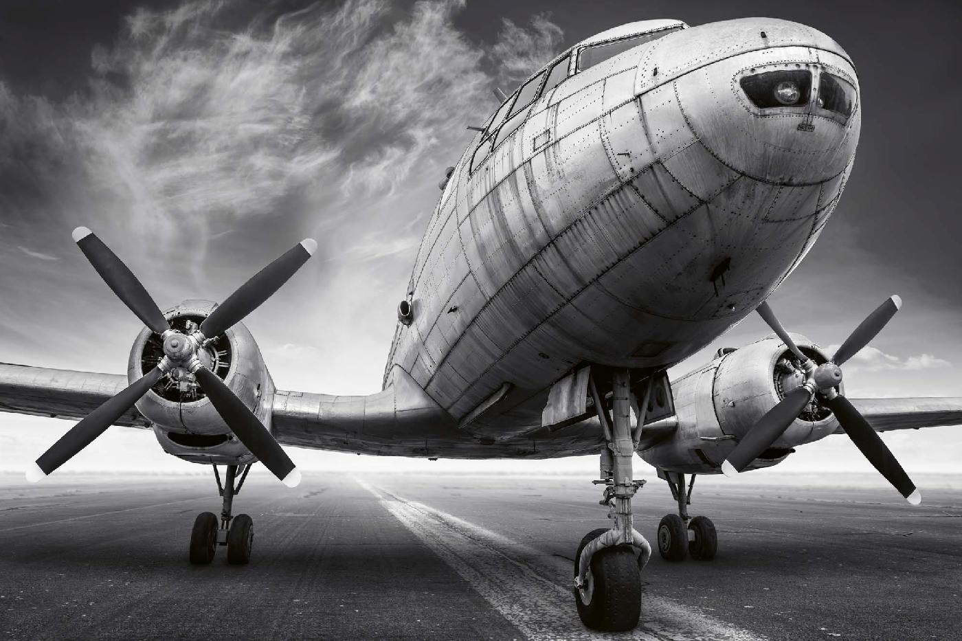Vlies Fototapete - Flugzeug auf einer Landebahn 375 x 250 cm