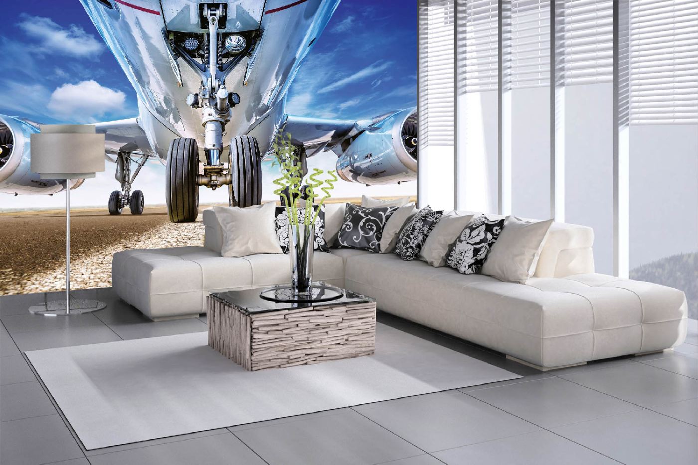 Vlies Fototapete - Flugzeug auf einer Landebahn 375 x 250 cm