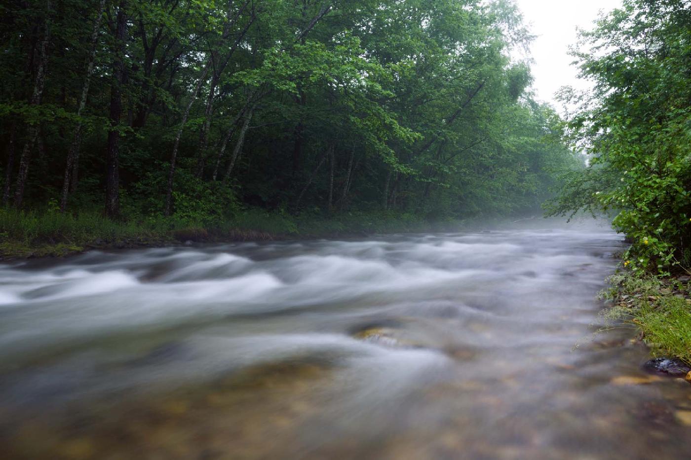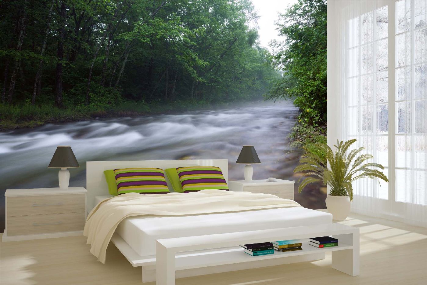 Vlies Fototapete - Fluss im Dunst 375 x 250 cm