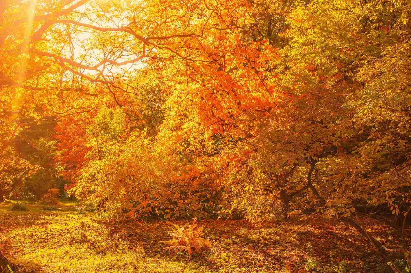 Vlies Fototapete - Gelbe Ahornbäume 375 x 250 cm