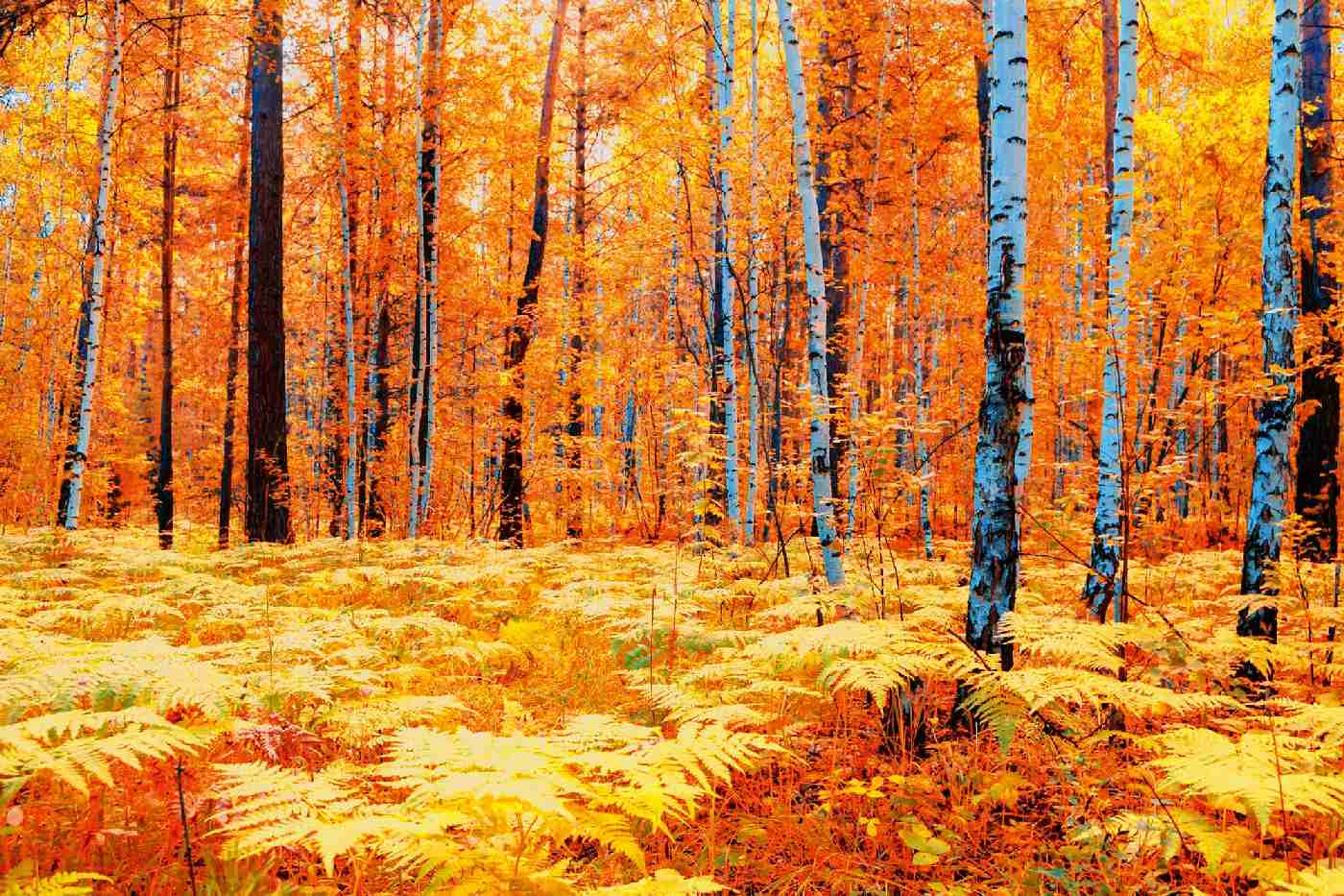Vlies Fototapete - Gelber Herbstwald 375 x 250 cm