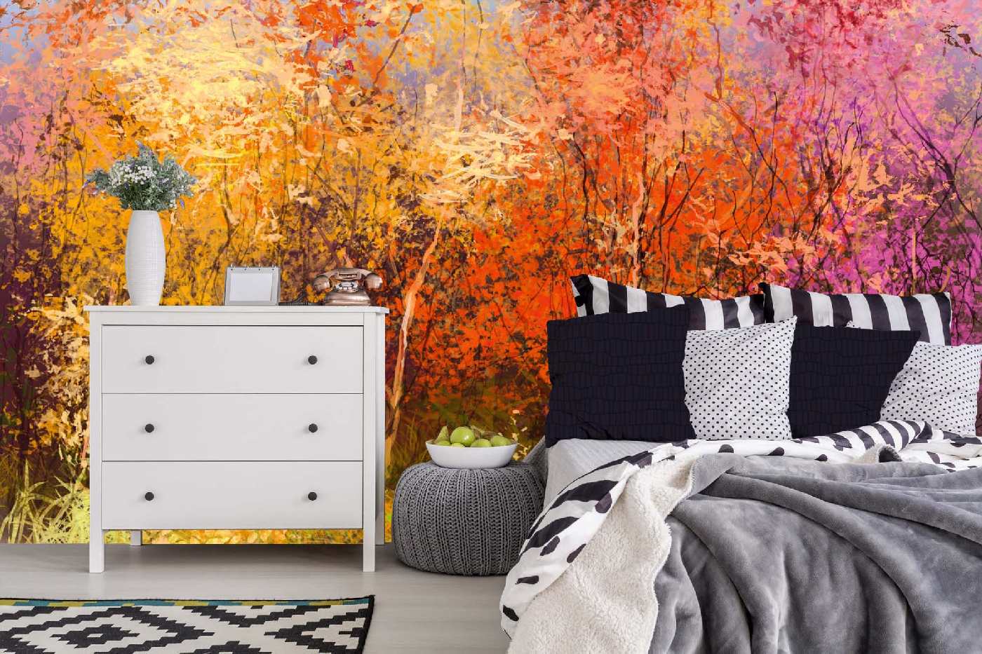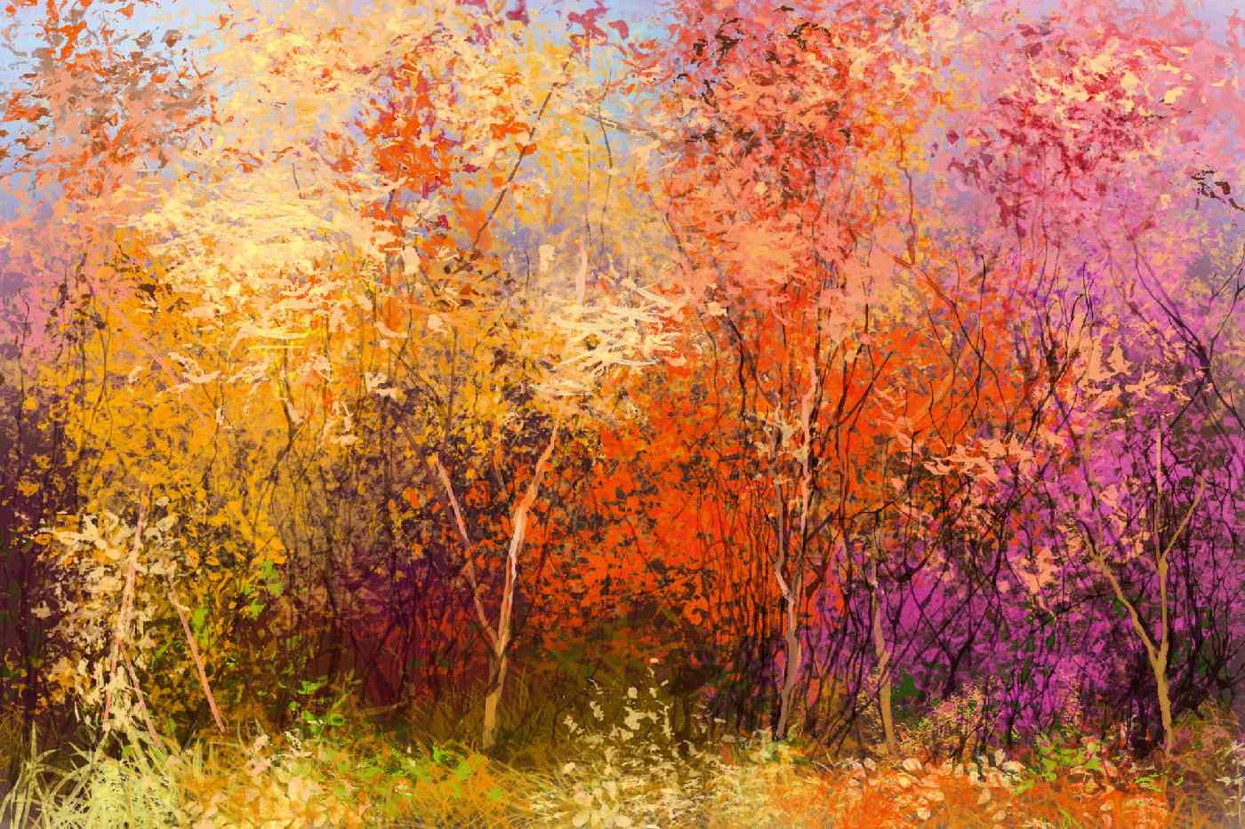 Vlies Fototapete - Gemälde - Bunte Herbstbäume 375 x 250 cm