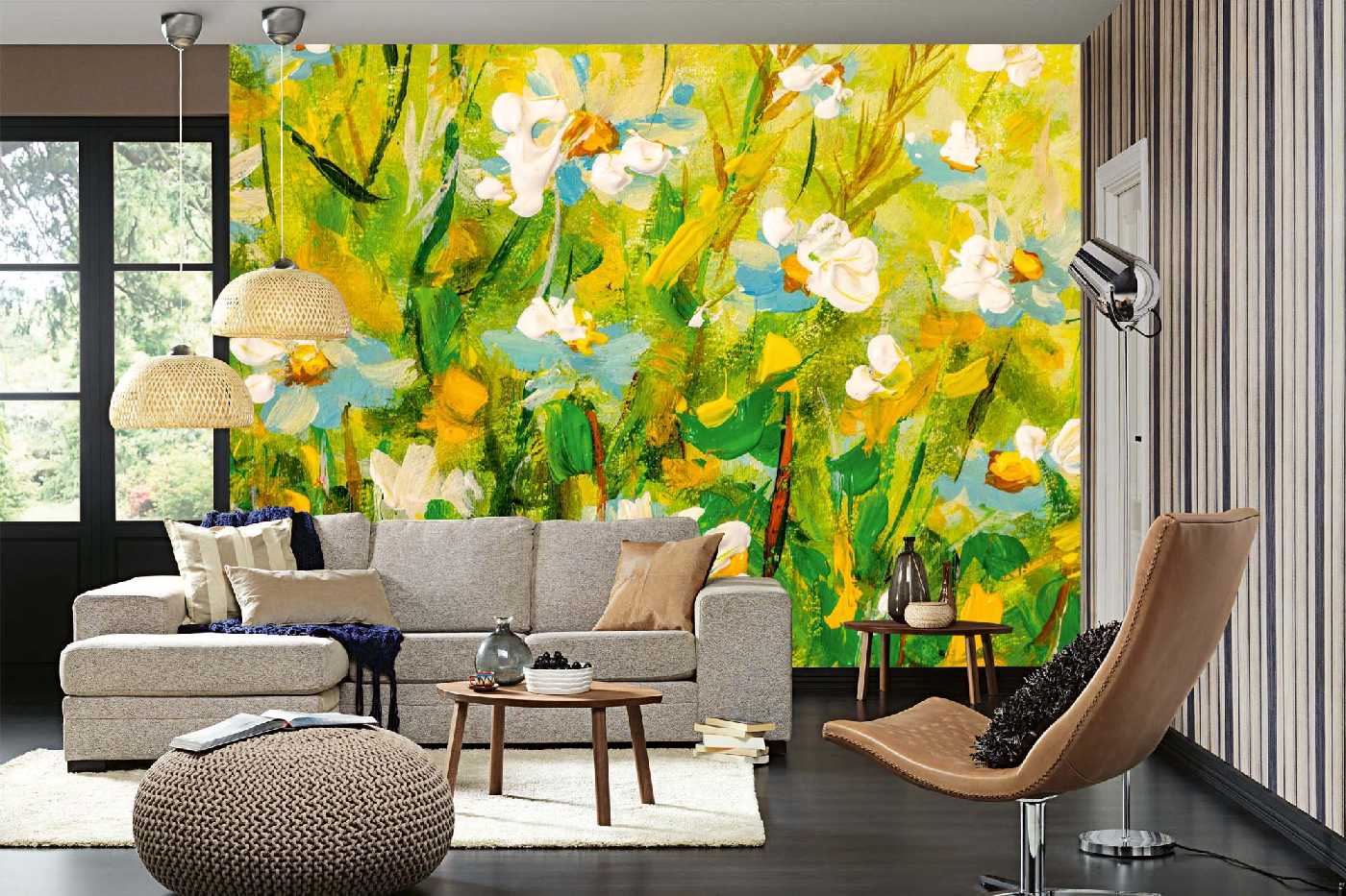 Vlies Fototapete - Gemälde - Gänseblümchen-Blumenfeld 375 x 250 cm