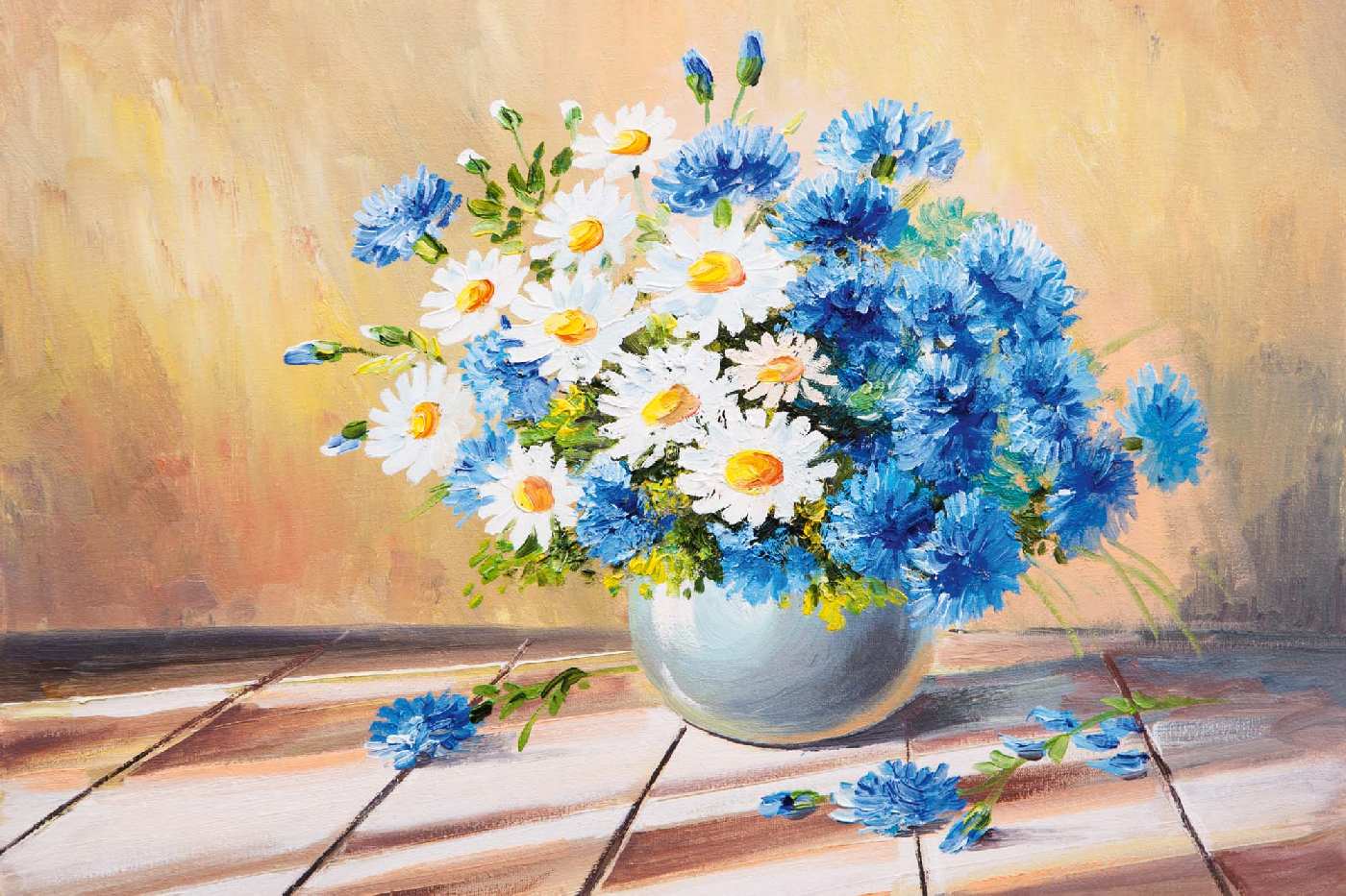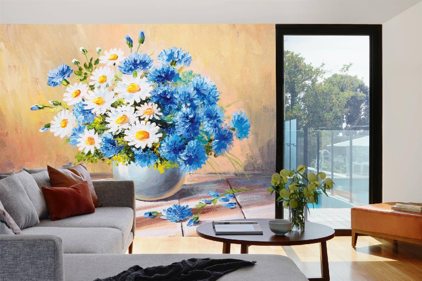 Vlies Fototapete - Gemälde - Hellblauer Blumenstrauß 375 x 250 cm
