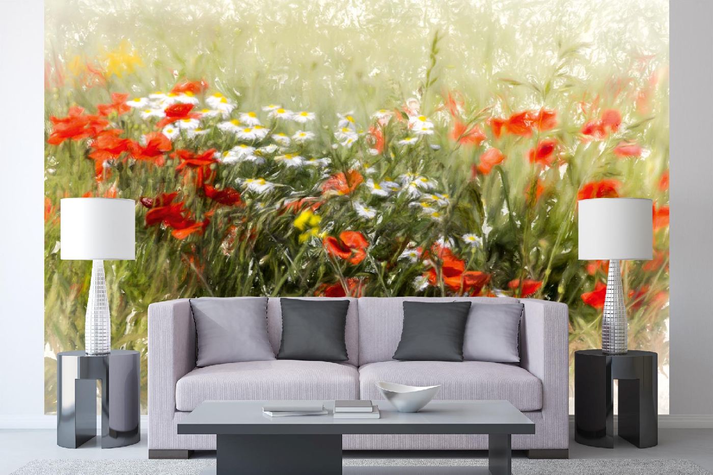 Vlies Fototapete - Gemälde - Mohnfeld 375 x 250 cm