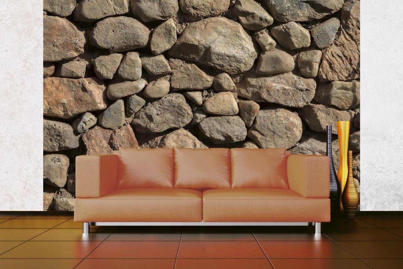 Vlies Fototapete - Gestapelte Steinmauer 375 x 250 cm