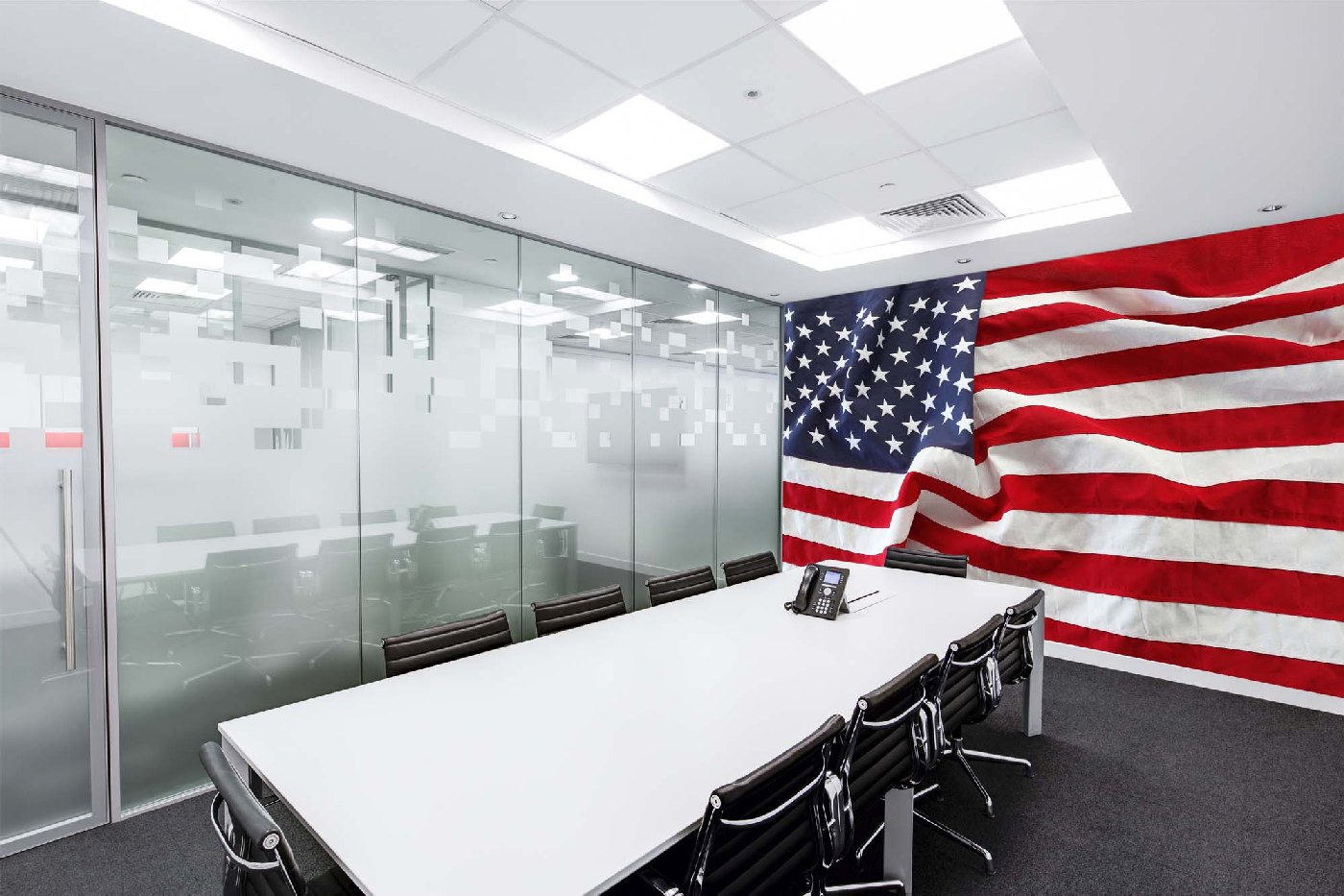 Vlies Fototapete - Gewellte amerikanische Flagge 375 x 250 cm