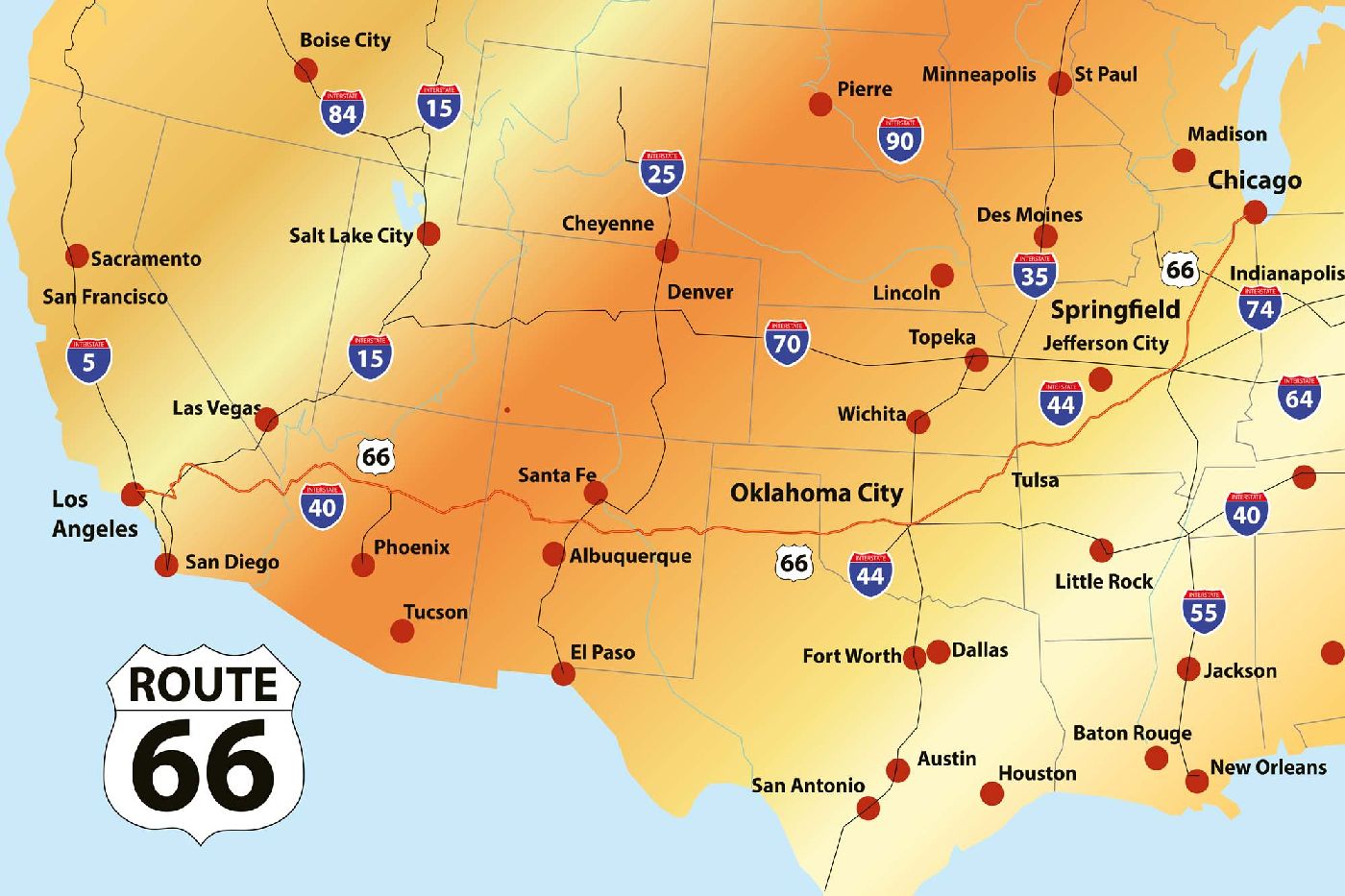 Vlies Fototapete - Goldene Karte der Route 66 375 x 250 cm