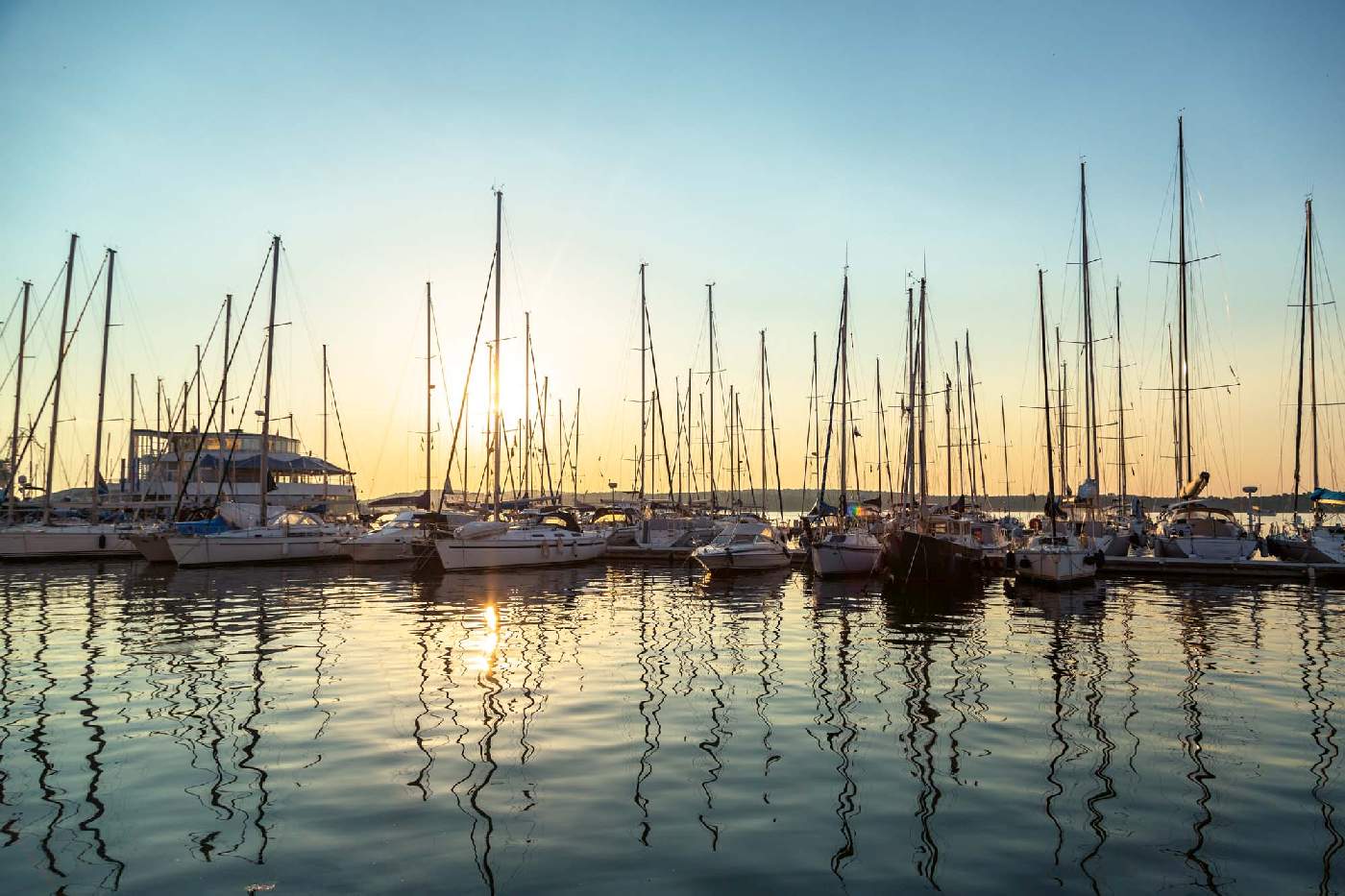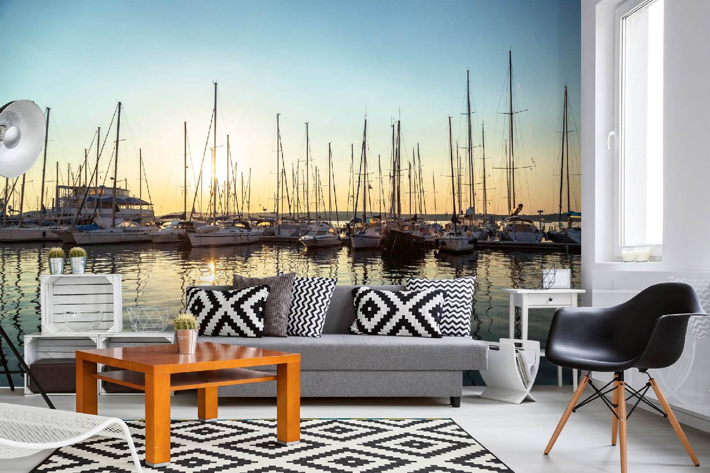 Vlies Fototapete - Hafen im Sonnenuntergang 375 x 250 cm