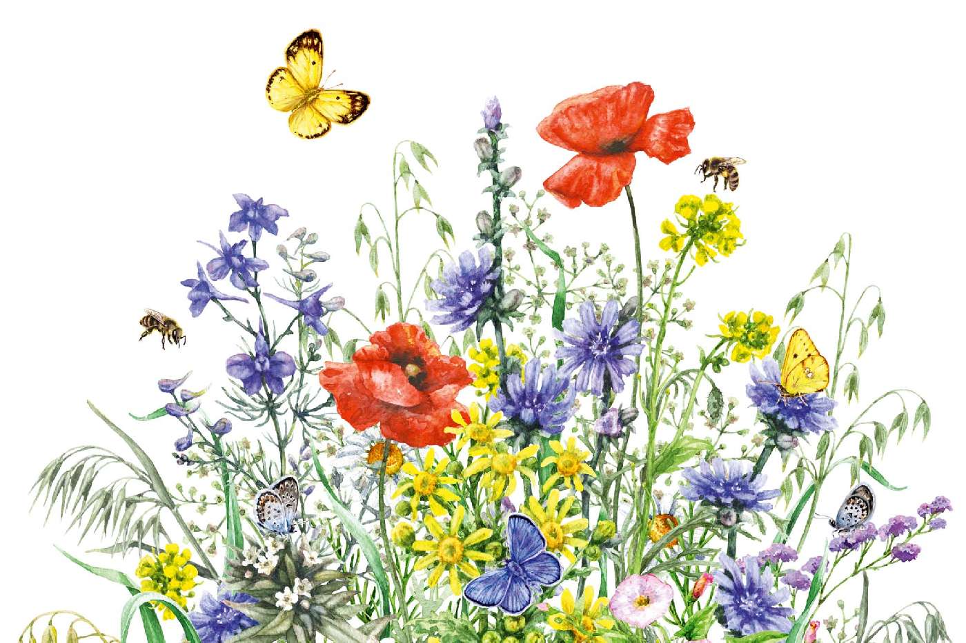 Vlies Fototapete - Handgezeichnete Wildblumen 375 x 250 cm