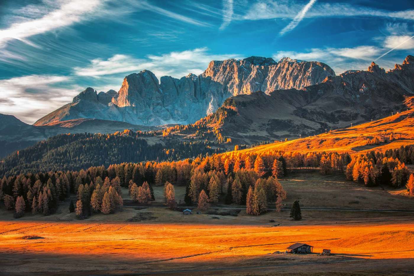 Vlies Fototapete - Herbstliche Sonnenaufgangslandschaft 375 x 250 cm