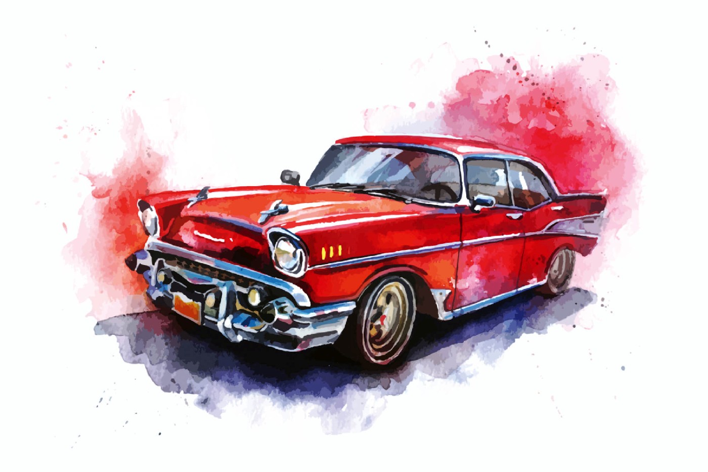 Vlies Fototapete - Illustriertes rotes Auto 375 x 250 cm