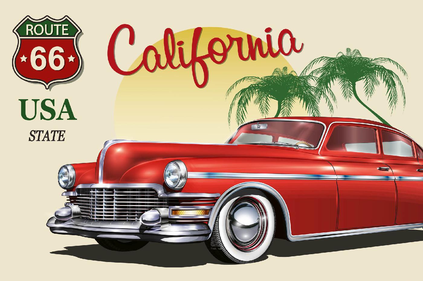 Vlies Fototapete - Kalifornien Vintage Plakat 375 x 250 cm