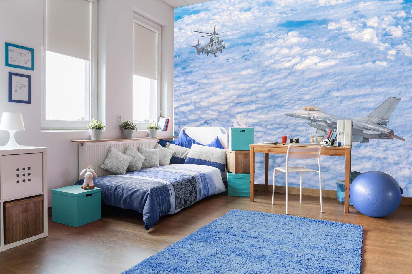 Vlies Fototapete - Kampfjet und Hubschrauber 375 x 250 cm