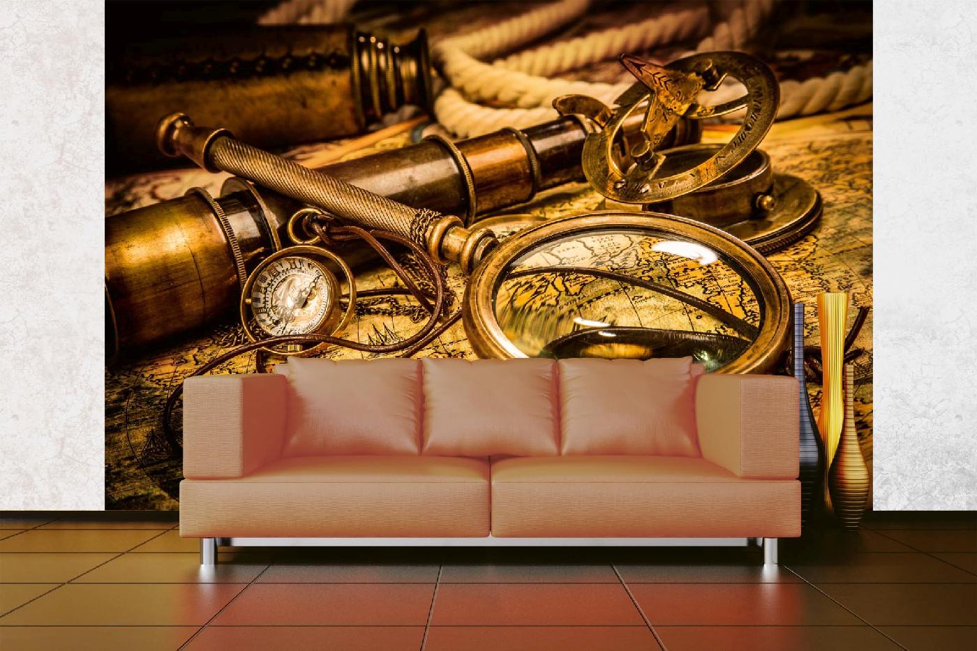 Vlies Fototapete - Karte mit Teleskop 375 x 250 cm