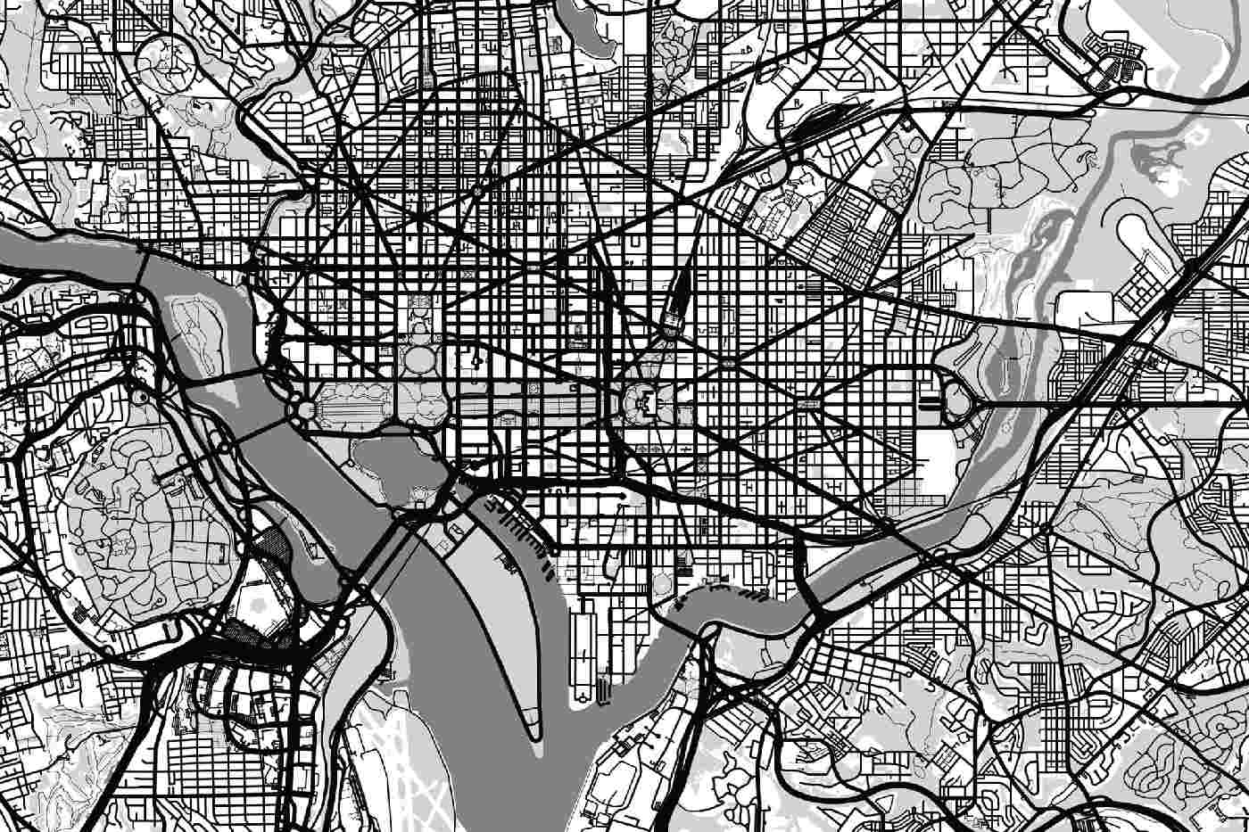 Vlies Fototapete - Karte von Washington D.C. 375 x 250 cm