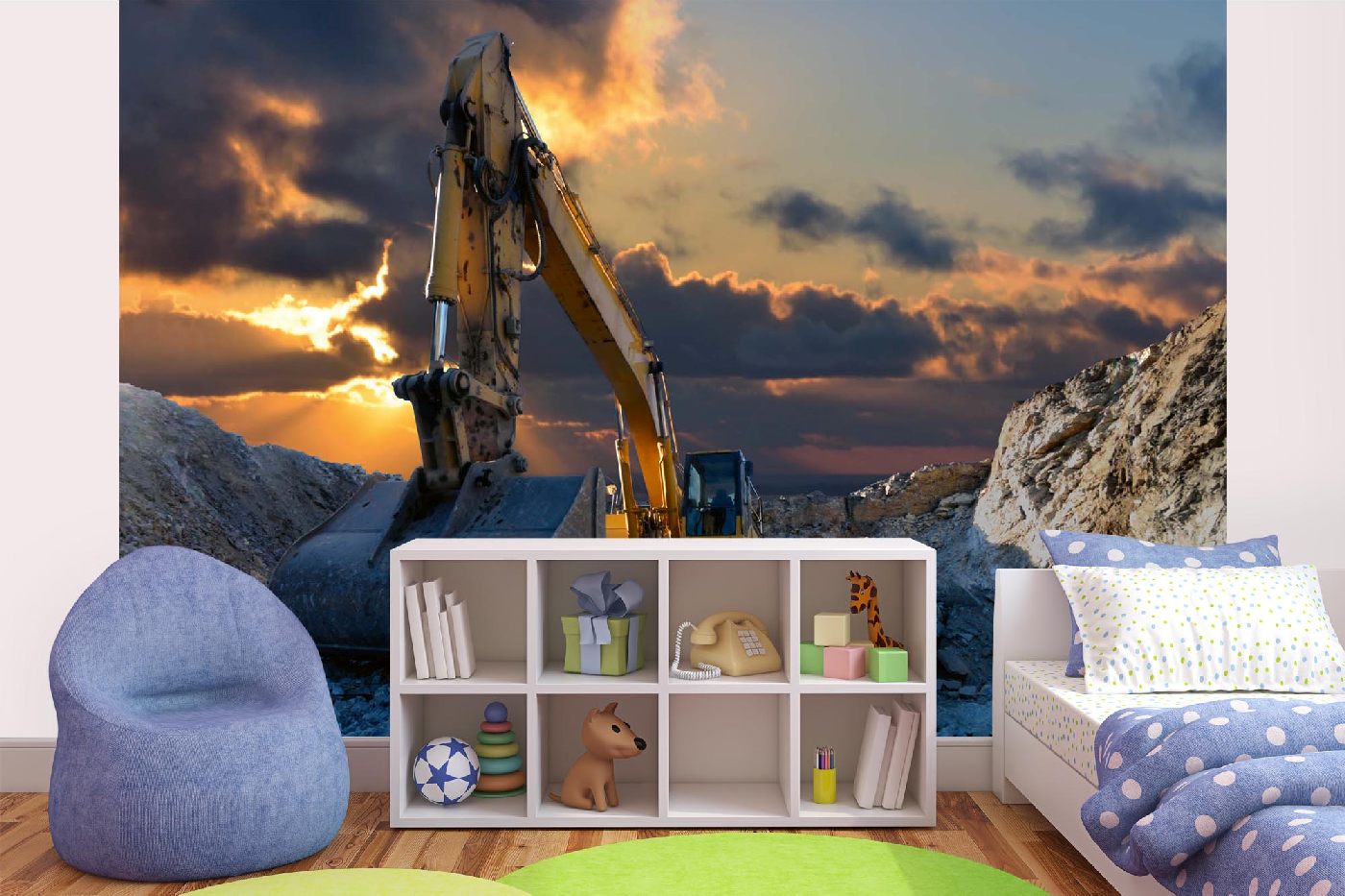 Vlies Fototapete - Kettenbagger 375 x 250 cm