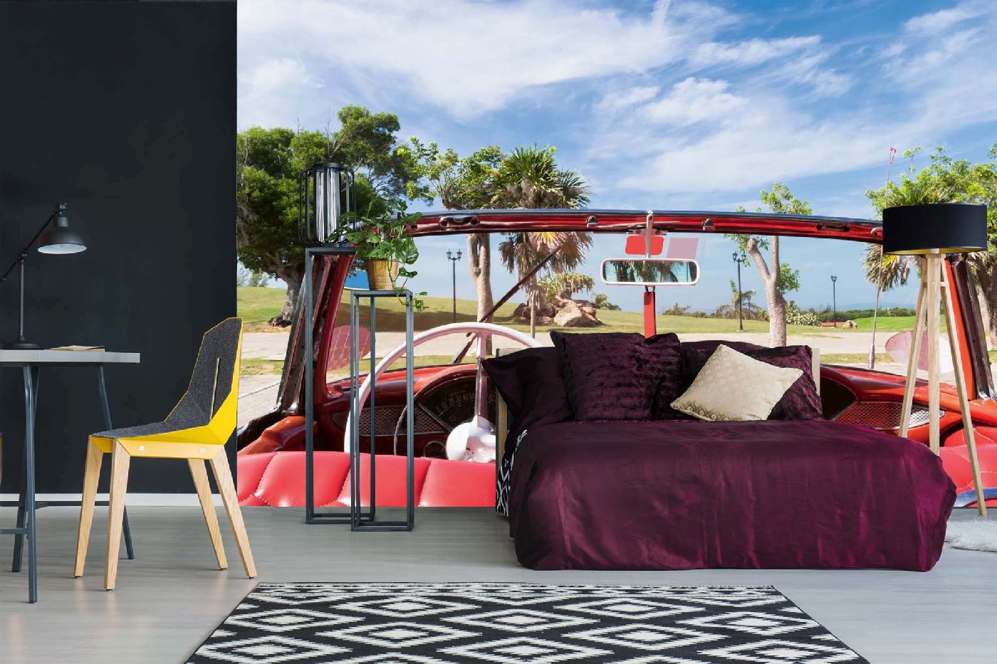 Vlies Fototapete - Klassisches rotes amerikanisches Auto 375 x 250 cm
