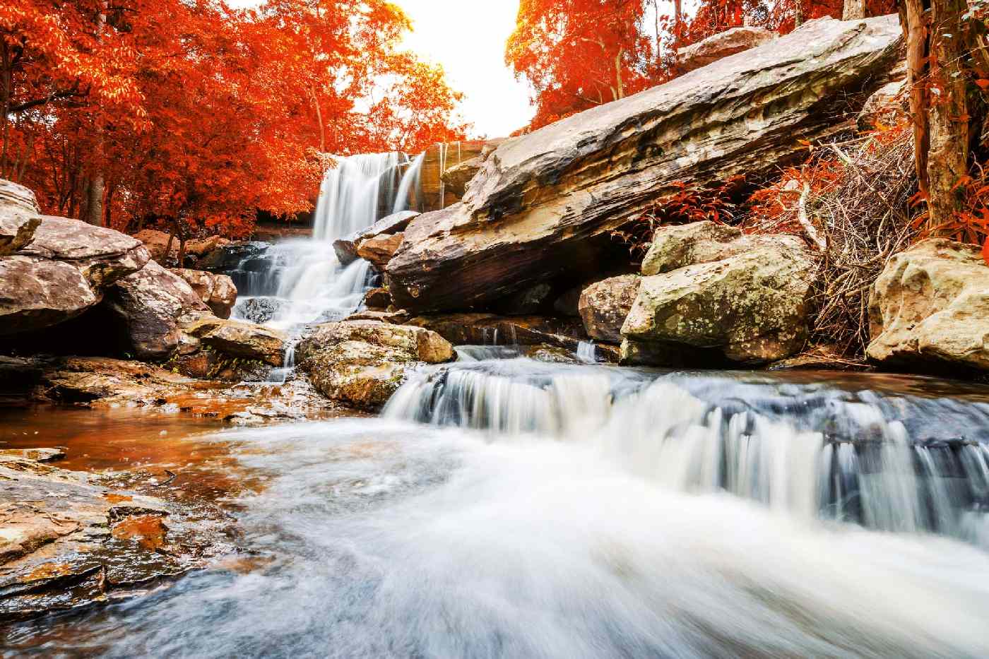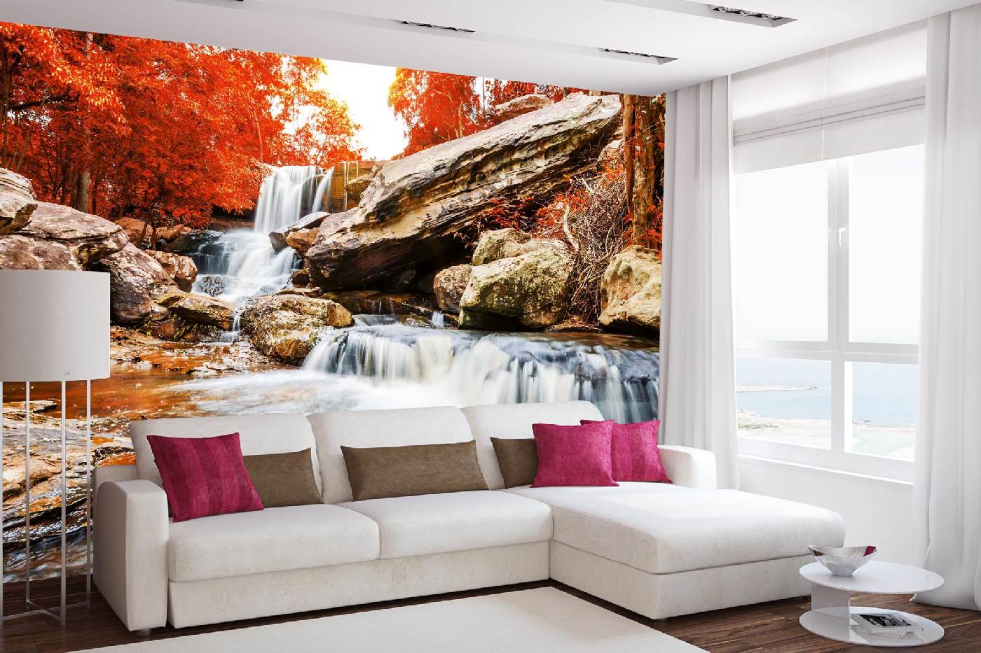 Vlies Fototapete - Landschaft mit dem Wasserfall 375 x 250 cm