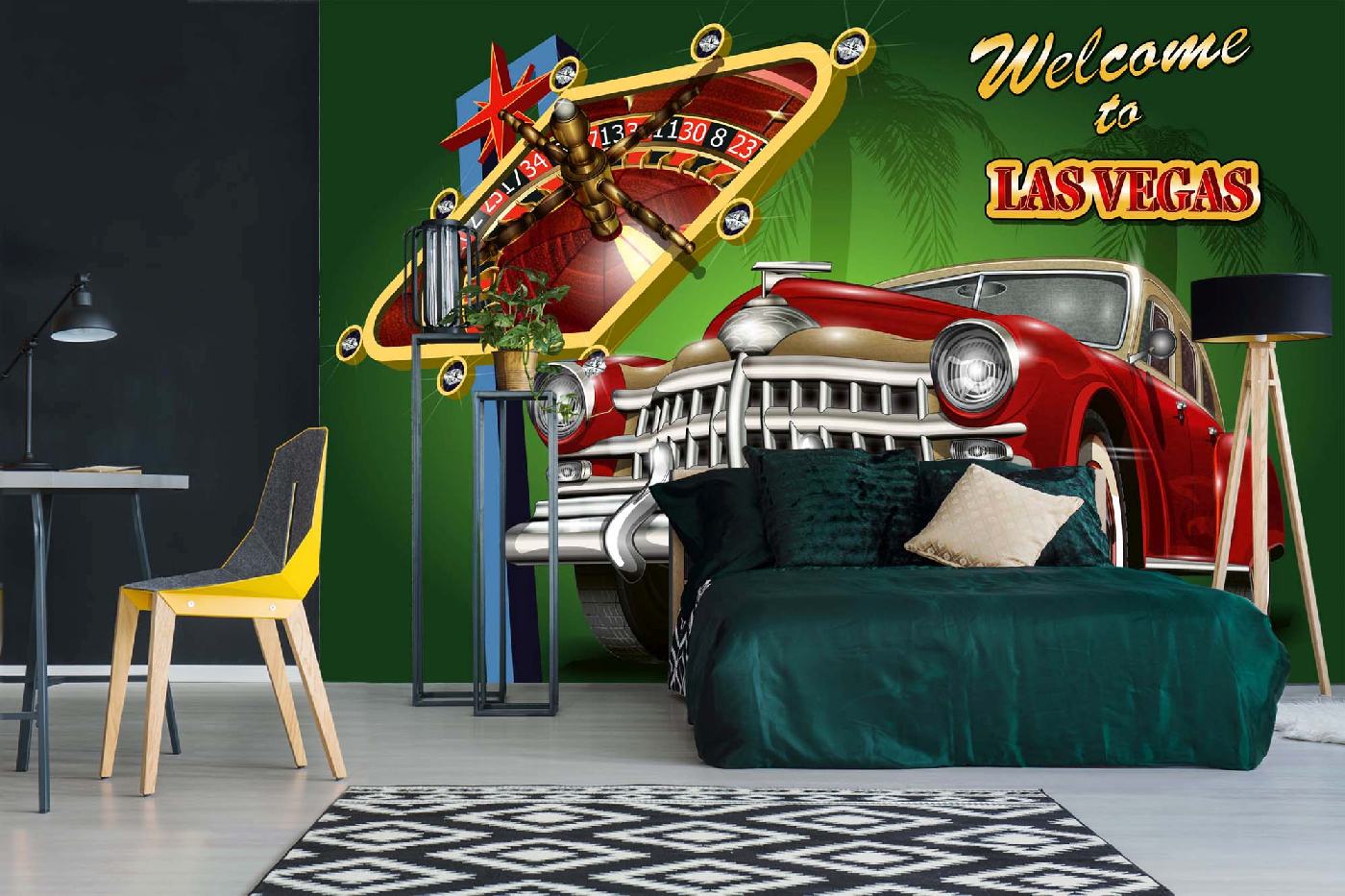 Vlies Fototapete - Las Vegas Retro Plakat 375 x 250 cm