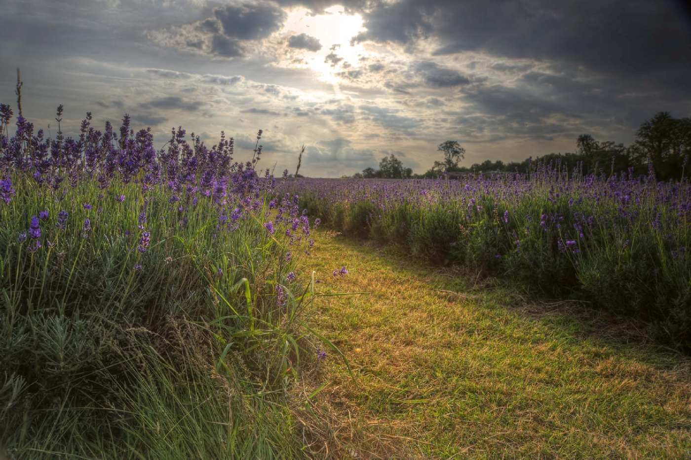 Vlies Fototapete - Lavendelfeld bei Sonnenuntergang 375 x 250 cm