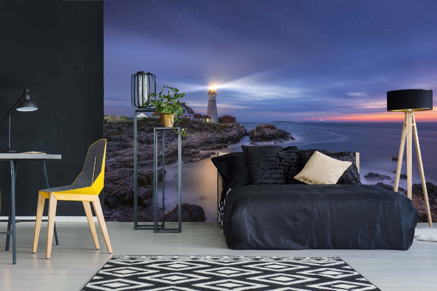 Vlies Fototapete - Leuchtturm unter den Sternen 375 x 250 cm