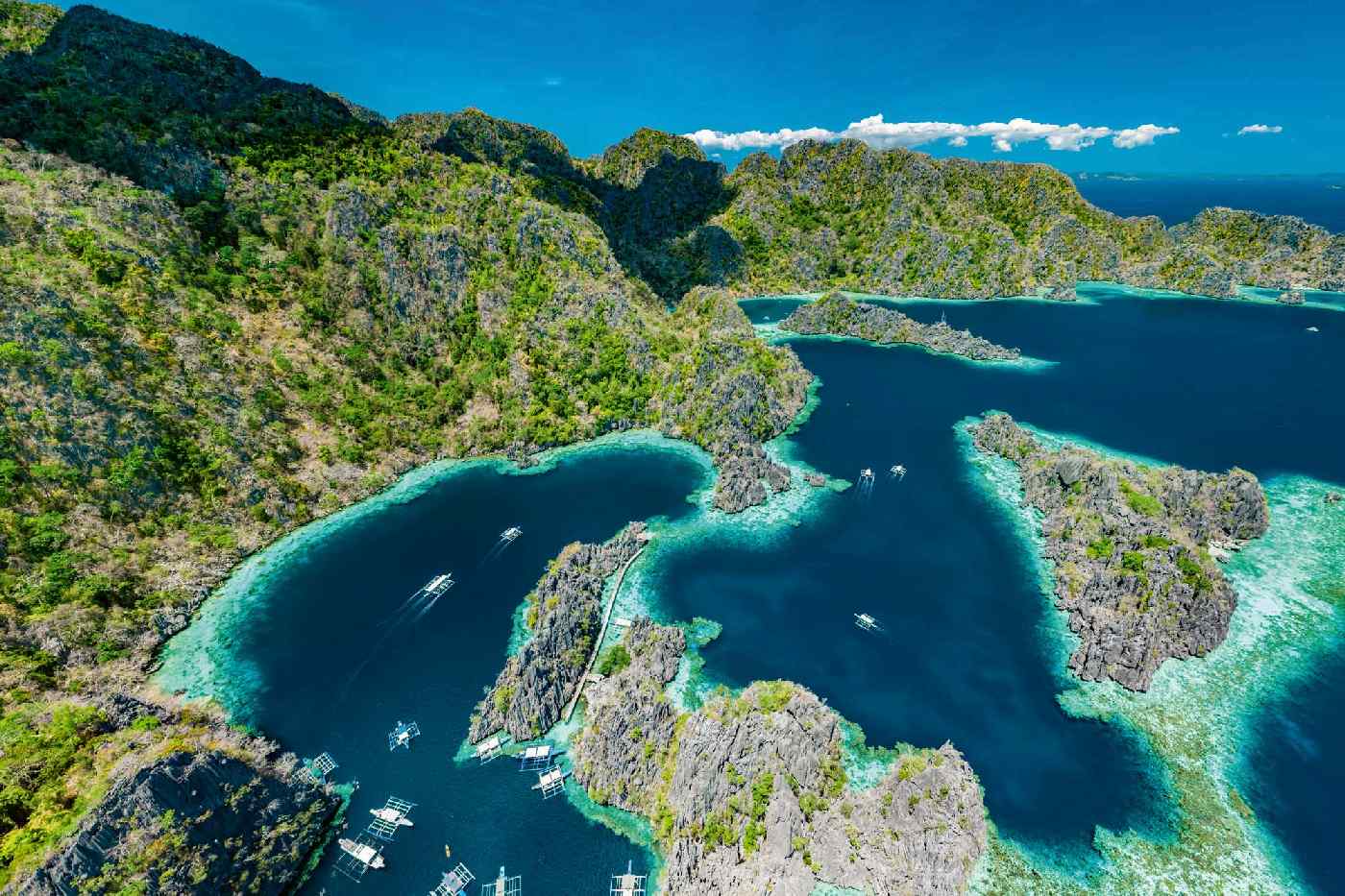 Vlies Fototapete - Luftbild von Lagunen 375 x 250 cm