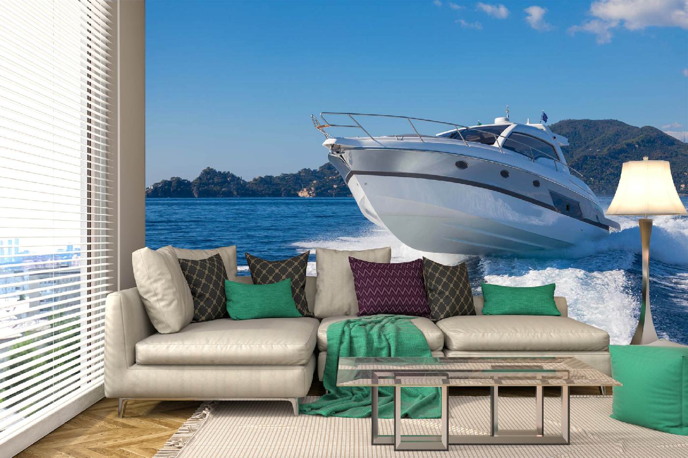 Vlies Fototapete - Motorbootsprung 375 x 250 cm