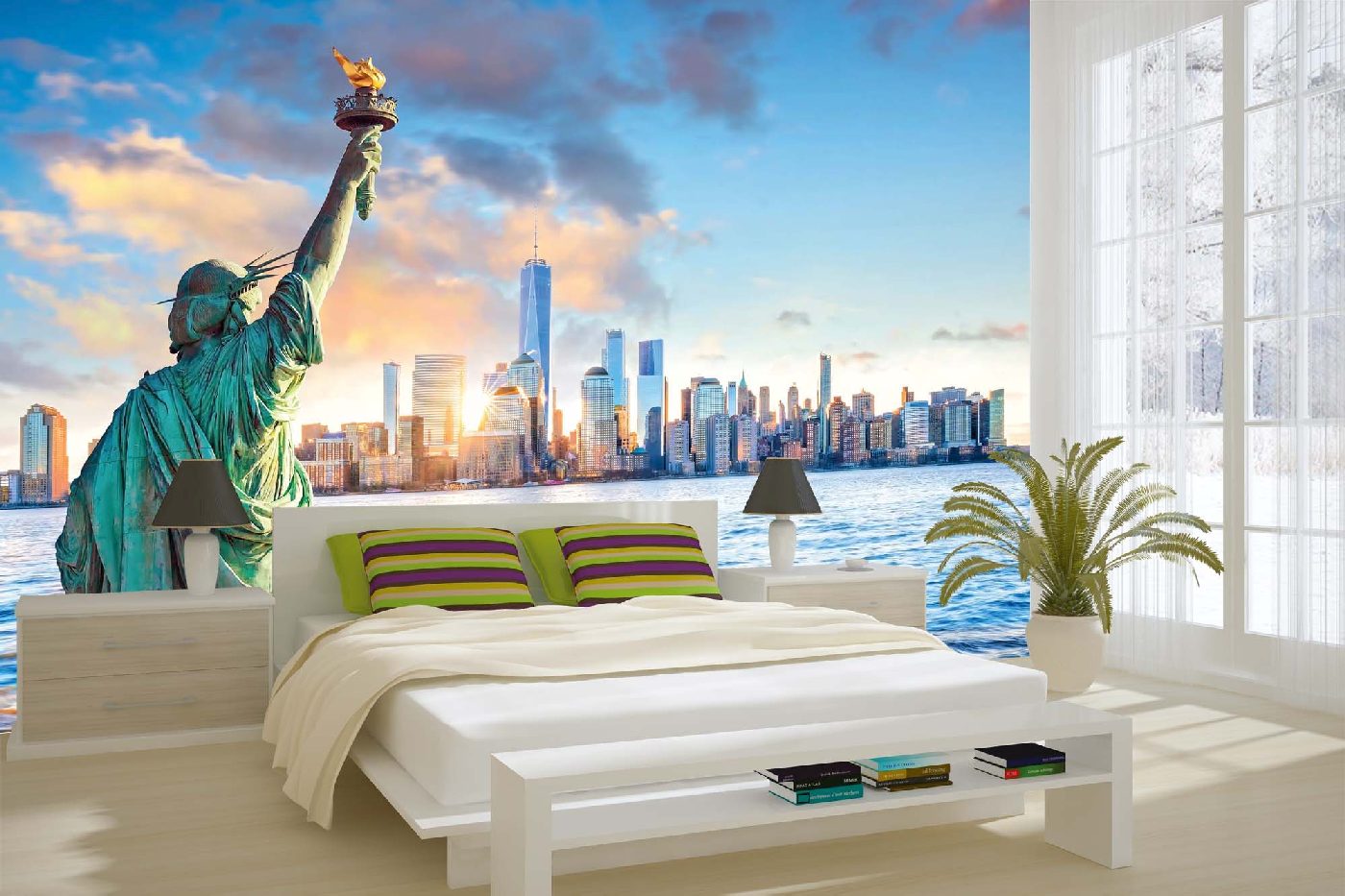 Vlies Fototapete - New York mit der Freiheitsstatue 375 x 250 cm