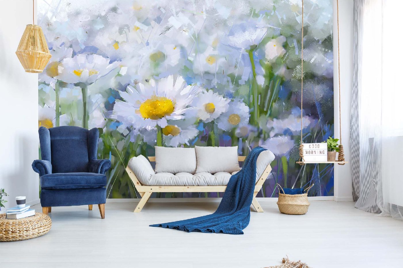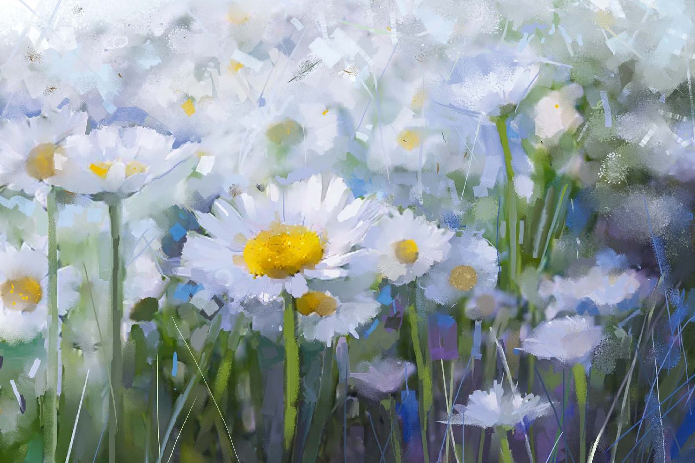 Vlies Fototapete - Ölgemälde Gänseblümchen 375 x 250 cm