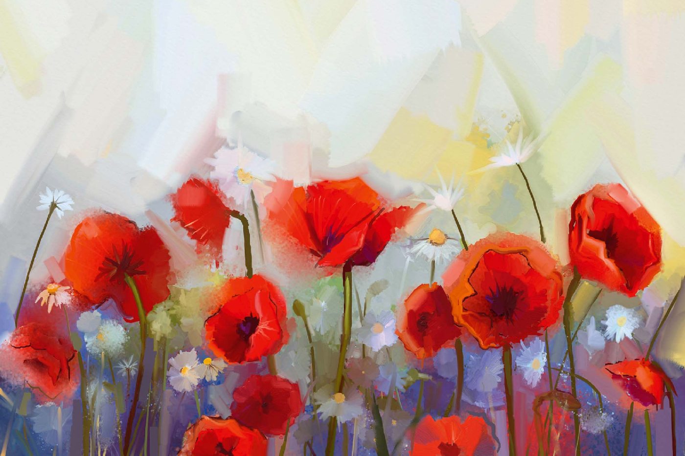 Vlies Fototapete - Ölgemälde Roter Mohn 375 x 250 cm