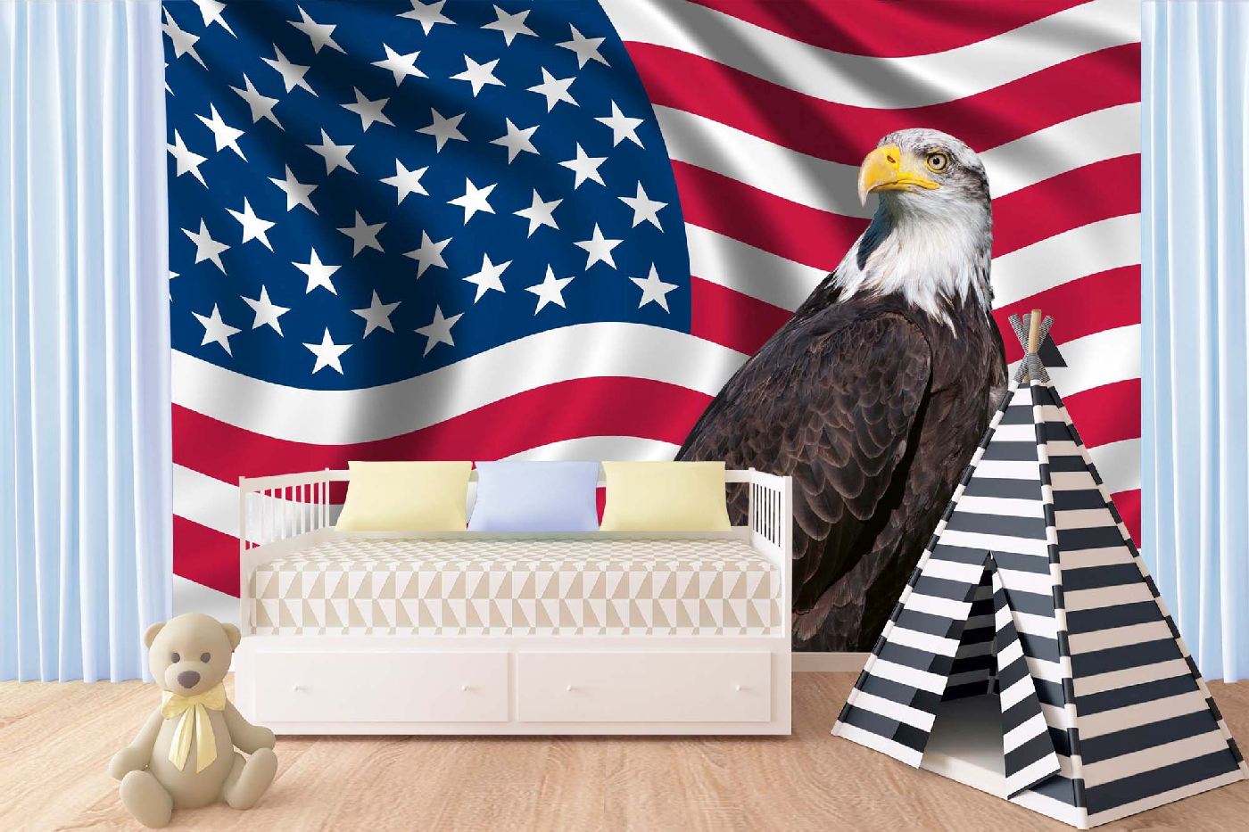 Vlies Fototapete - Patriotische amerikanische Flagge und Adler 375 x 250 cm