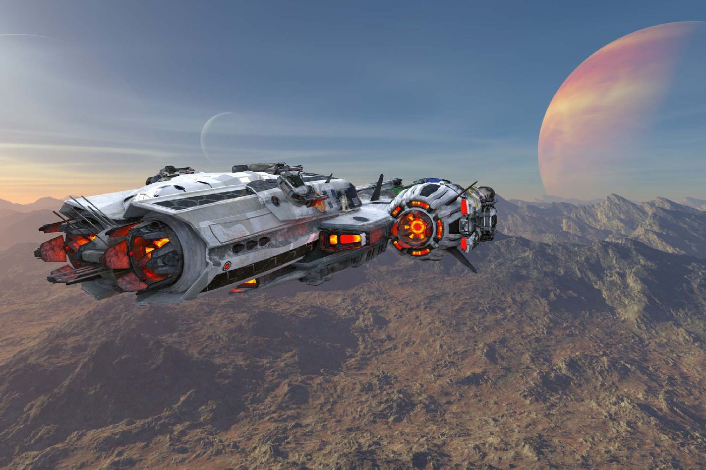 Vlies Fototapete - Raumschiff im Sonnenuntergang 375 x 250 cm