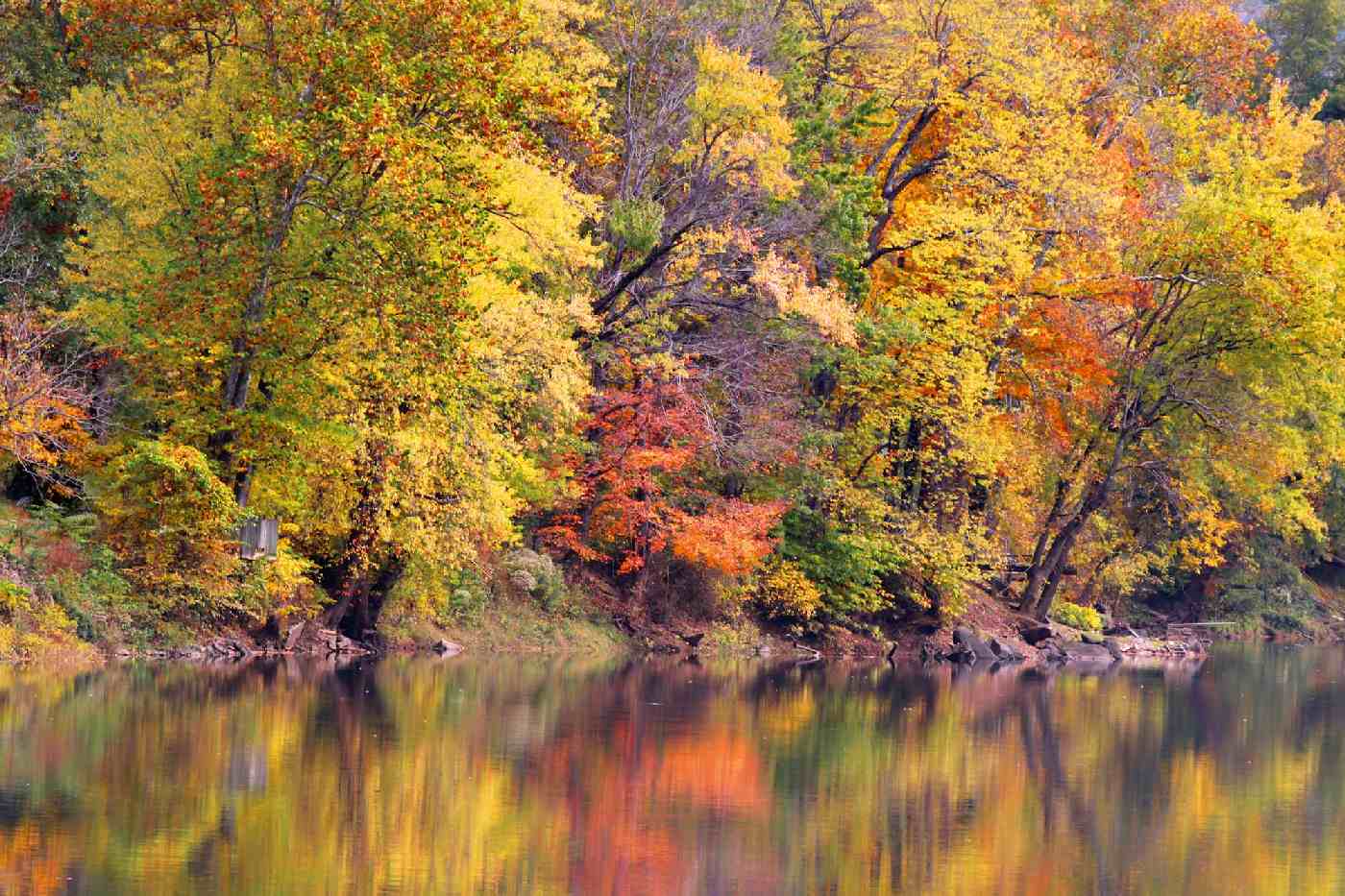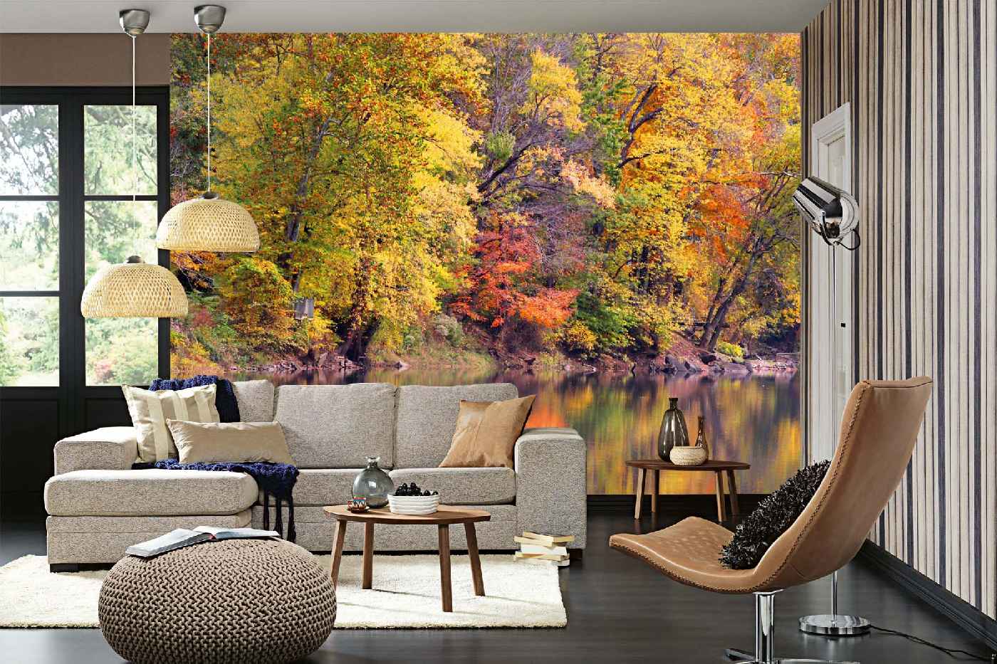 Vlies Fototapete - Reflexionen von Herbstbäumen 375 x 250 cm