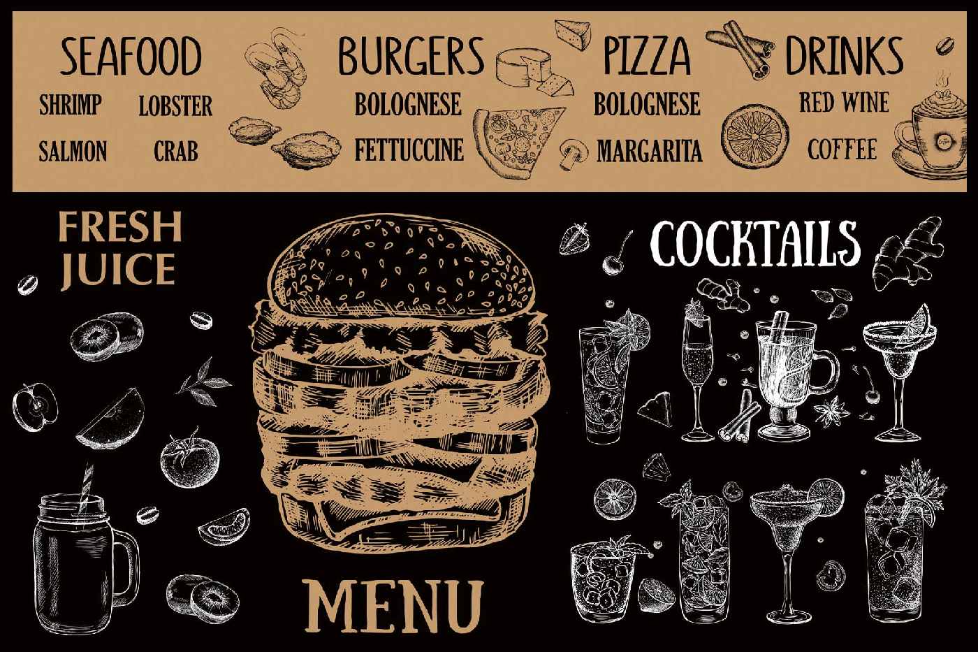 Vlies Fototapete - Restaurant-Cafe-Menü 375 x 250 cm