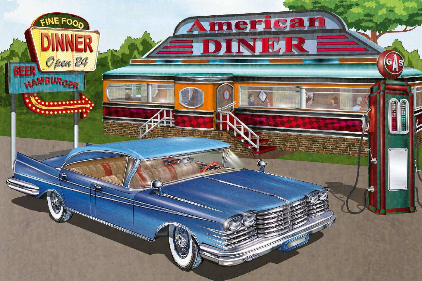 Vlies Fototapete - Restaurant Vintage Plakat 375 x 250 cm